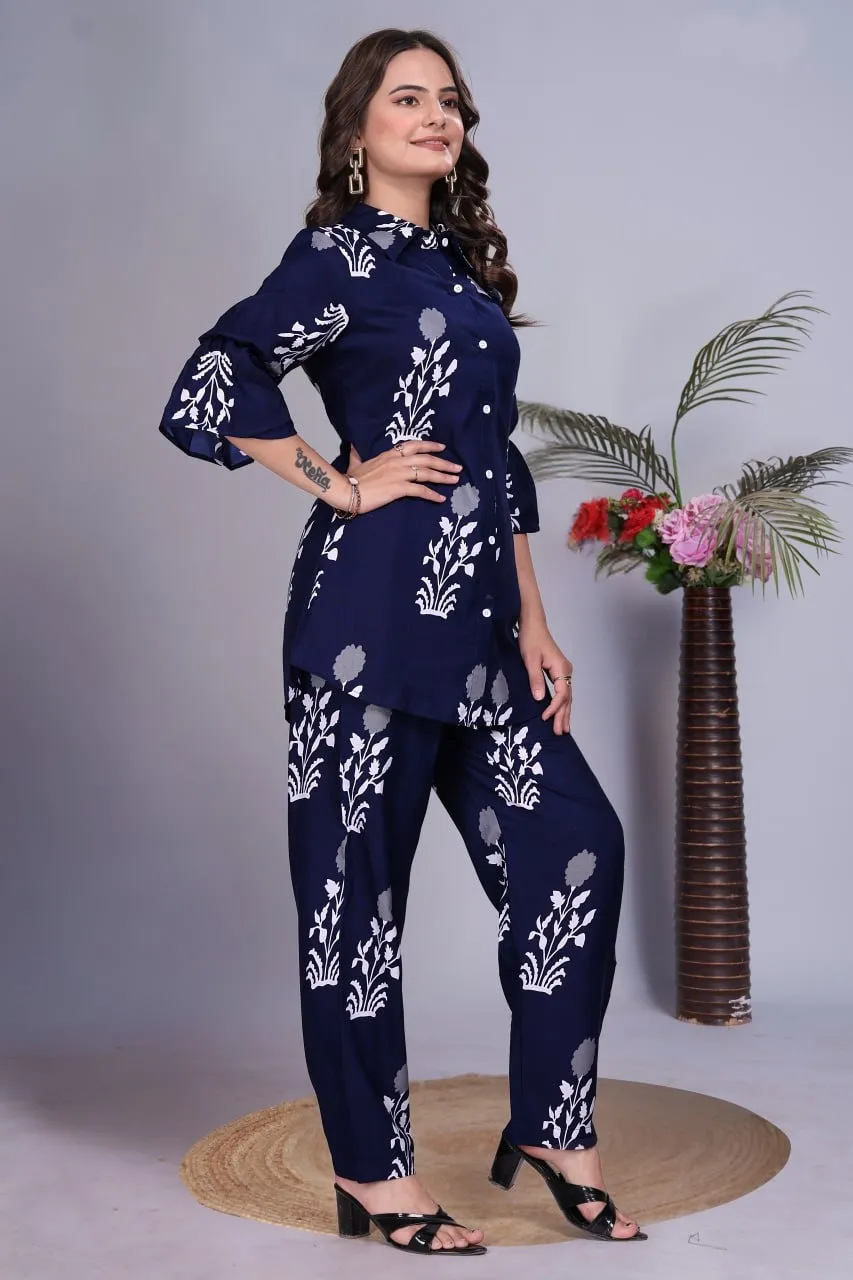 AEA 574 Maroon Rayon Printed Co Ord Set