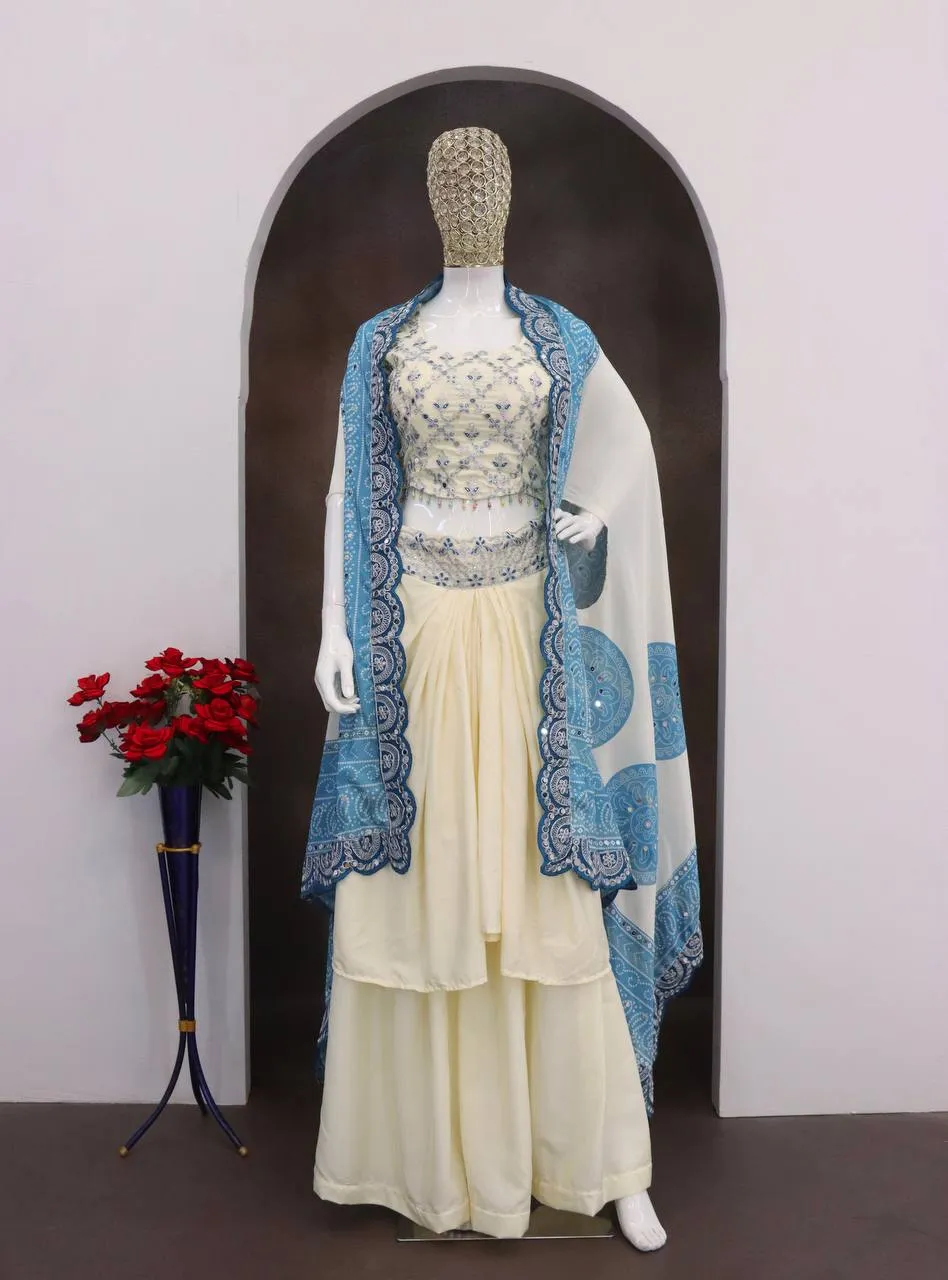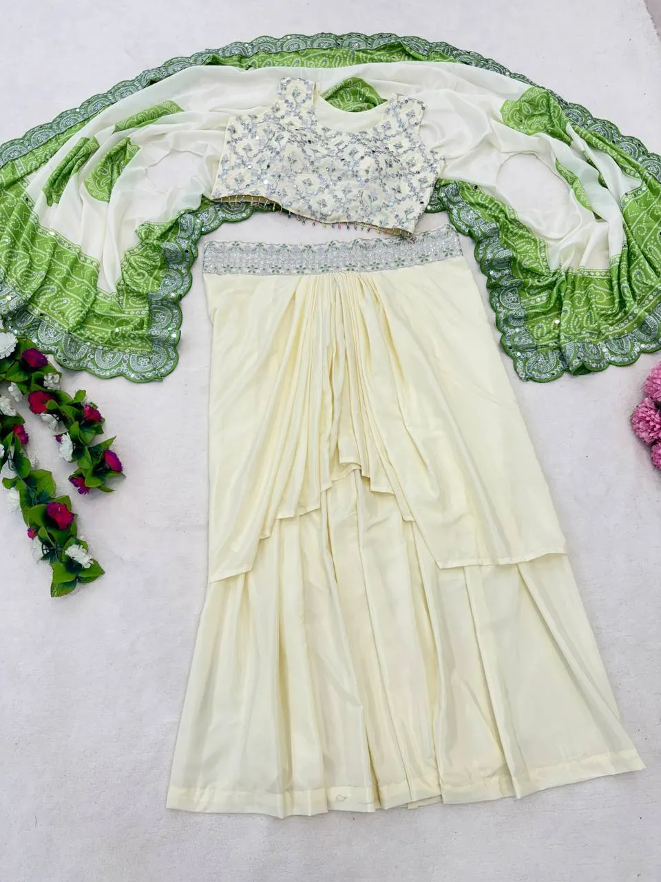 | Dhoti | Soft Crep Silk, Stitching- Comfort-fit, Ready to wear, Work- Embroidery Sequins |