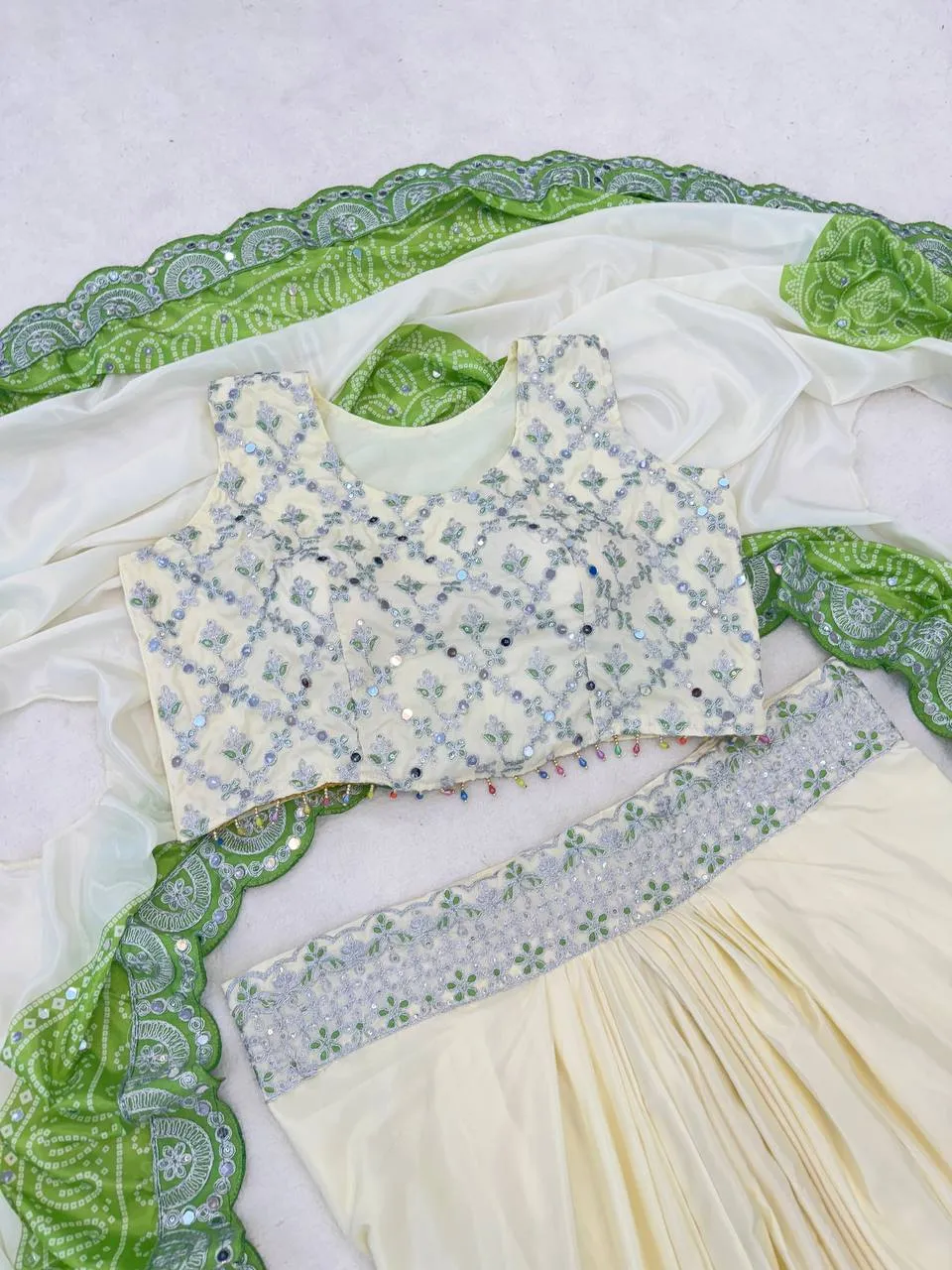 | Dupatta | Chinnon Silk, Work- Bandhani Print With Real Mirror & Embroidery Lace Work |