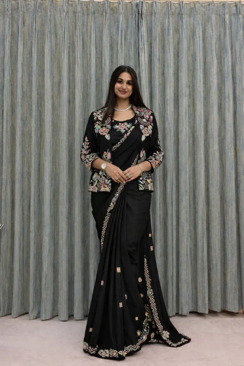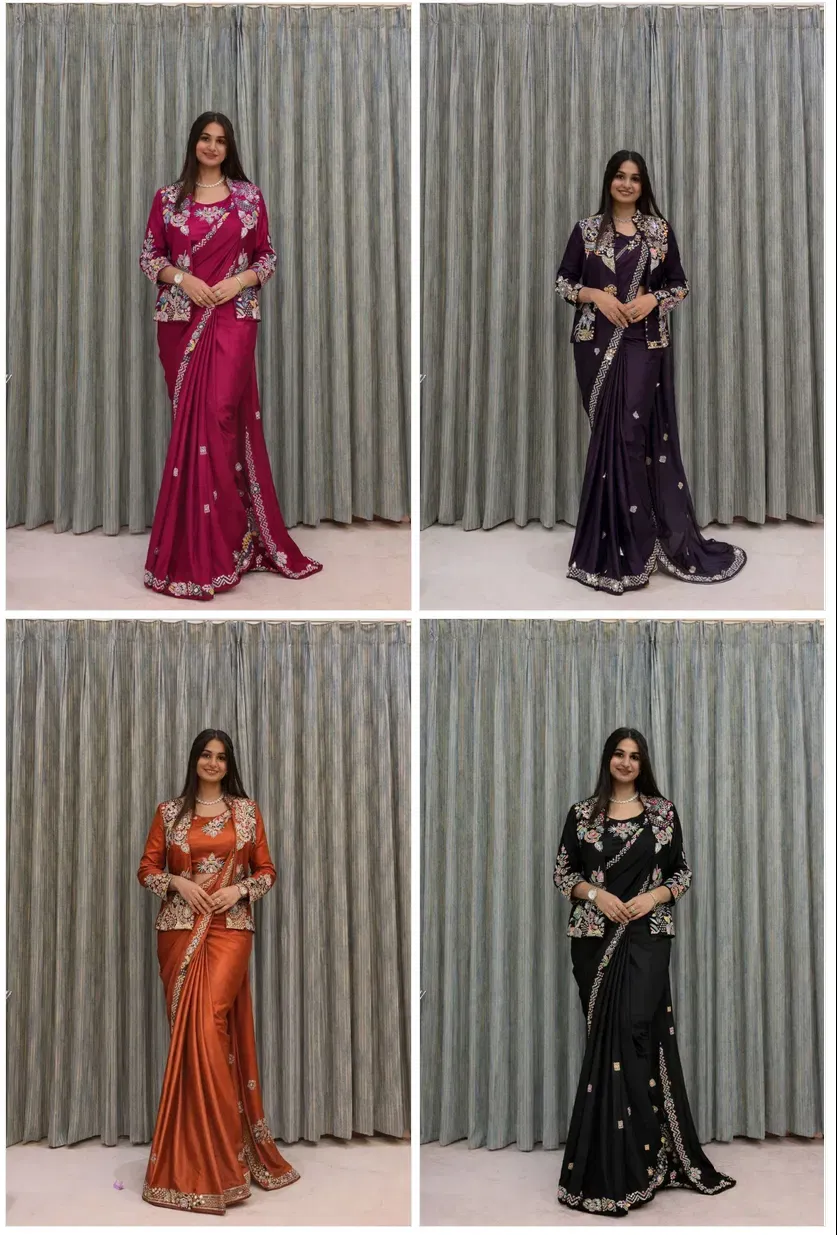 Bt 7142 Crep Satin Ready to Wear Saree with Koti Collection