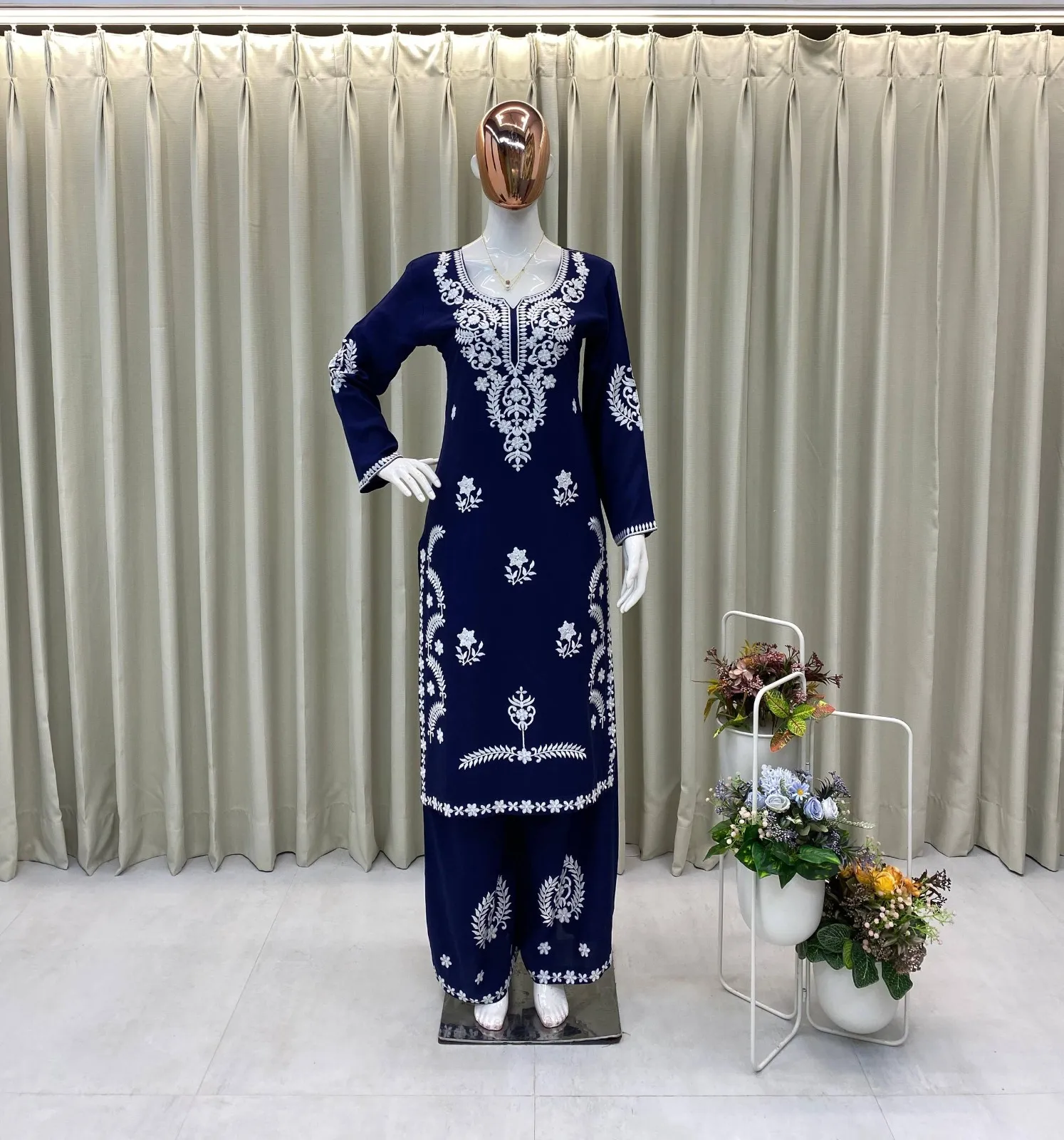 Lila 122 Heavy Rayon Co Ord Set With Embroidery Work