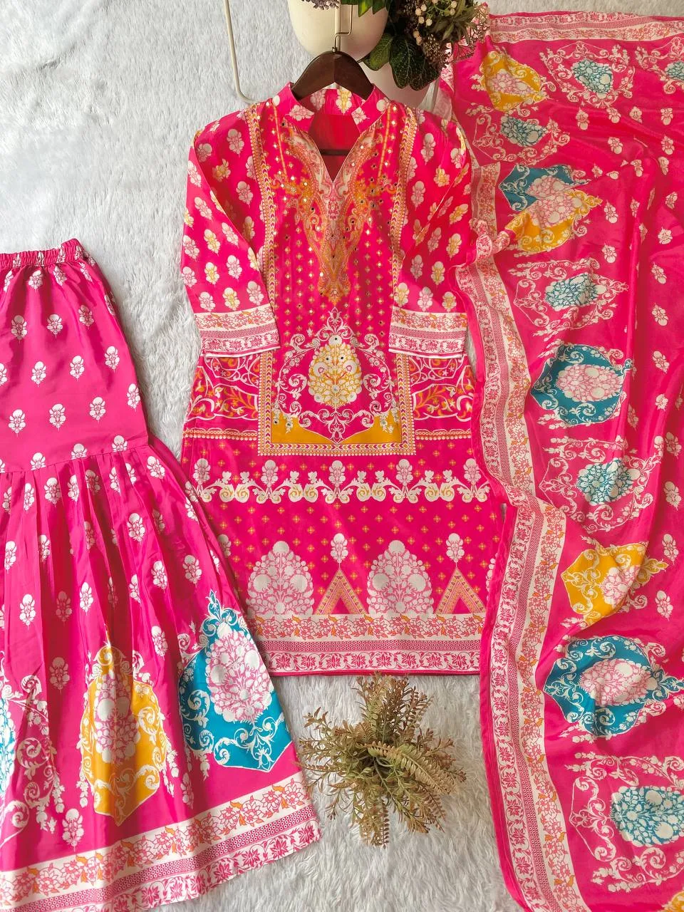 | Top | PRINTED FRENCH CRAPE, WORK:REAL MIRROR WORK, INNER : MICRO, HEIGHT- Inch, HEIGHT- 40”inch |