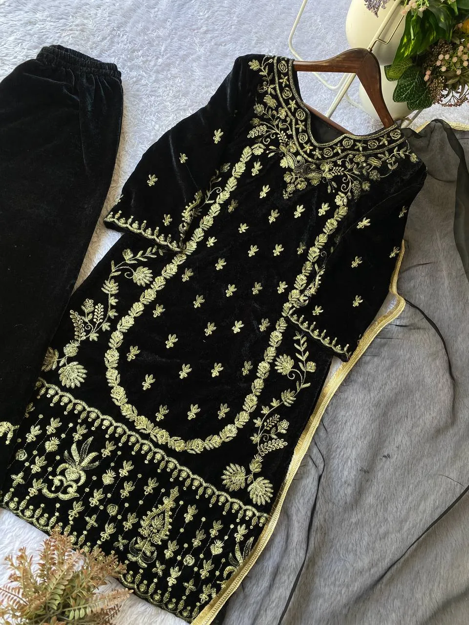 BottomVELVET, WORK- EMBROIDERY WORK, SIZE- FREE SIZE