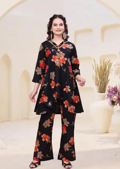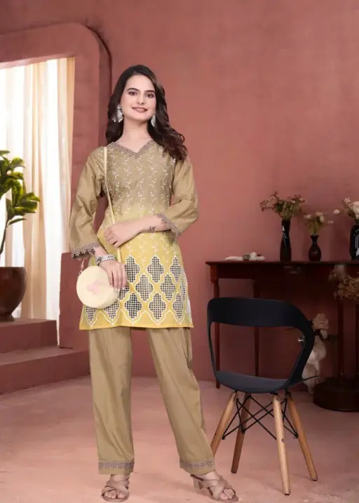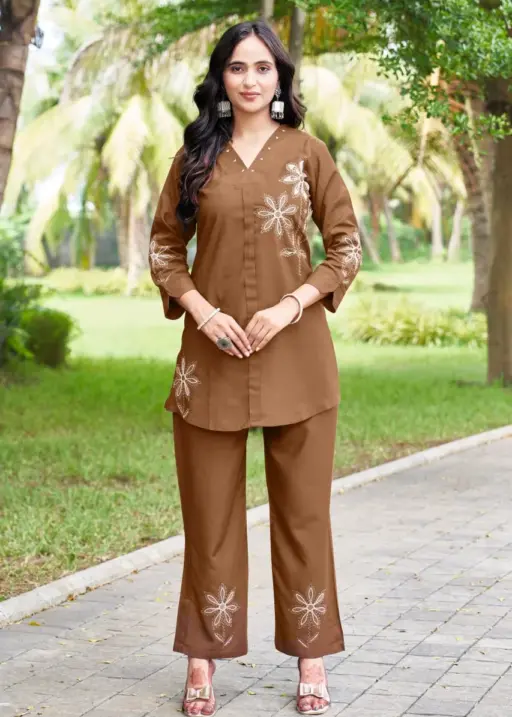 Lila 122 Heavy Rayon Co Ord Set With Embroidery Work