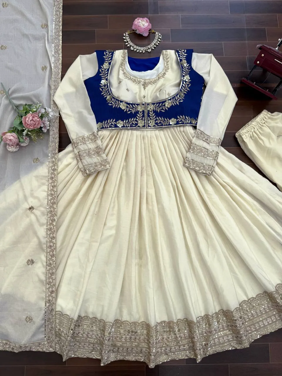 TopChinon silk, Lining- Soft Micro Cotton, Work- Thread with Sequnce, Length- 51 inch, 3XL margin for a custom fit