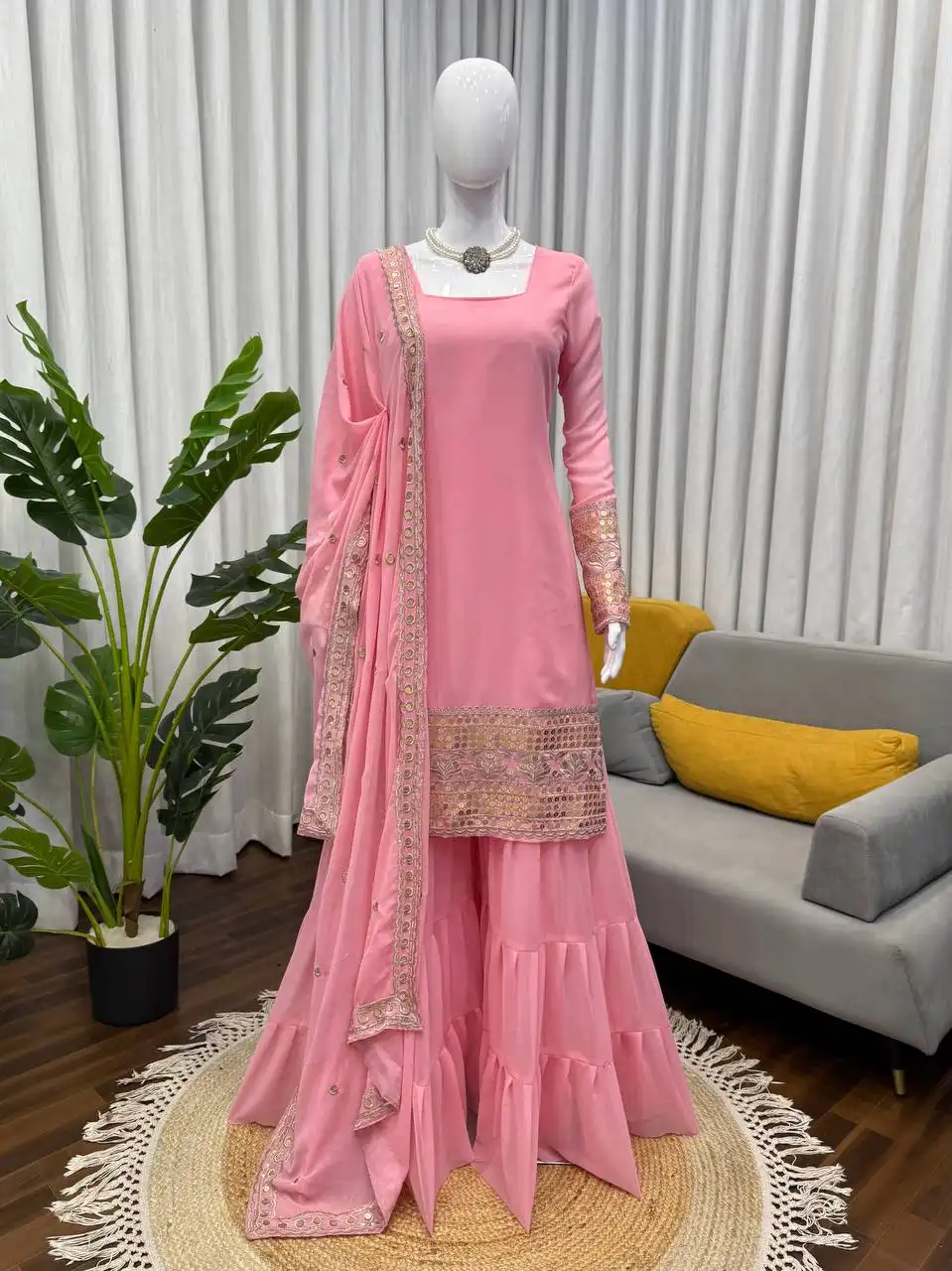 | Bottom | Foux Gorgette, Fit- Fully Stitched up to Size 44 with Stretchable Elastic Waist, Length- 42 inches |