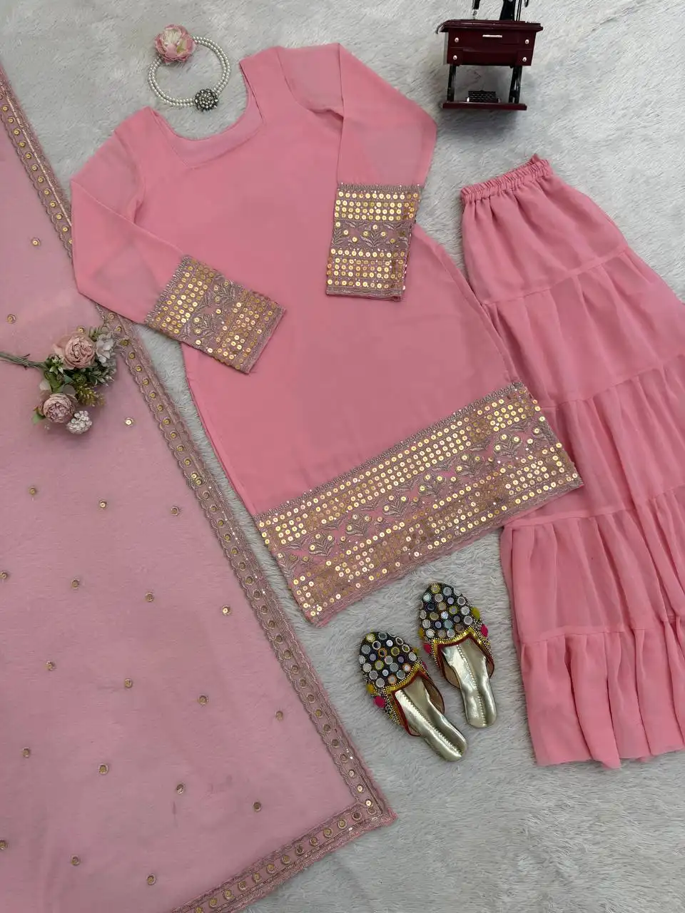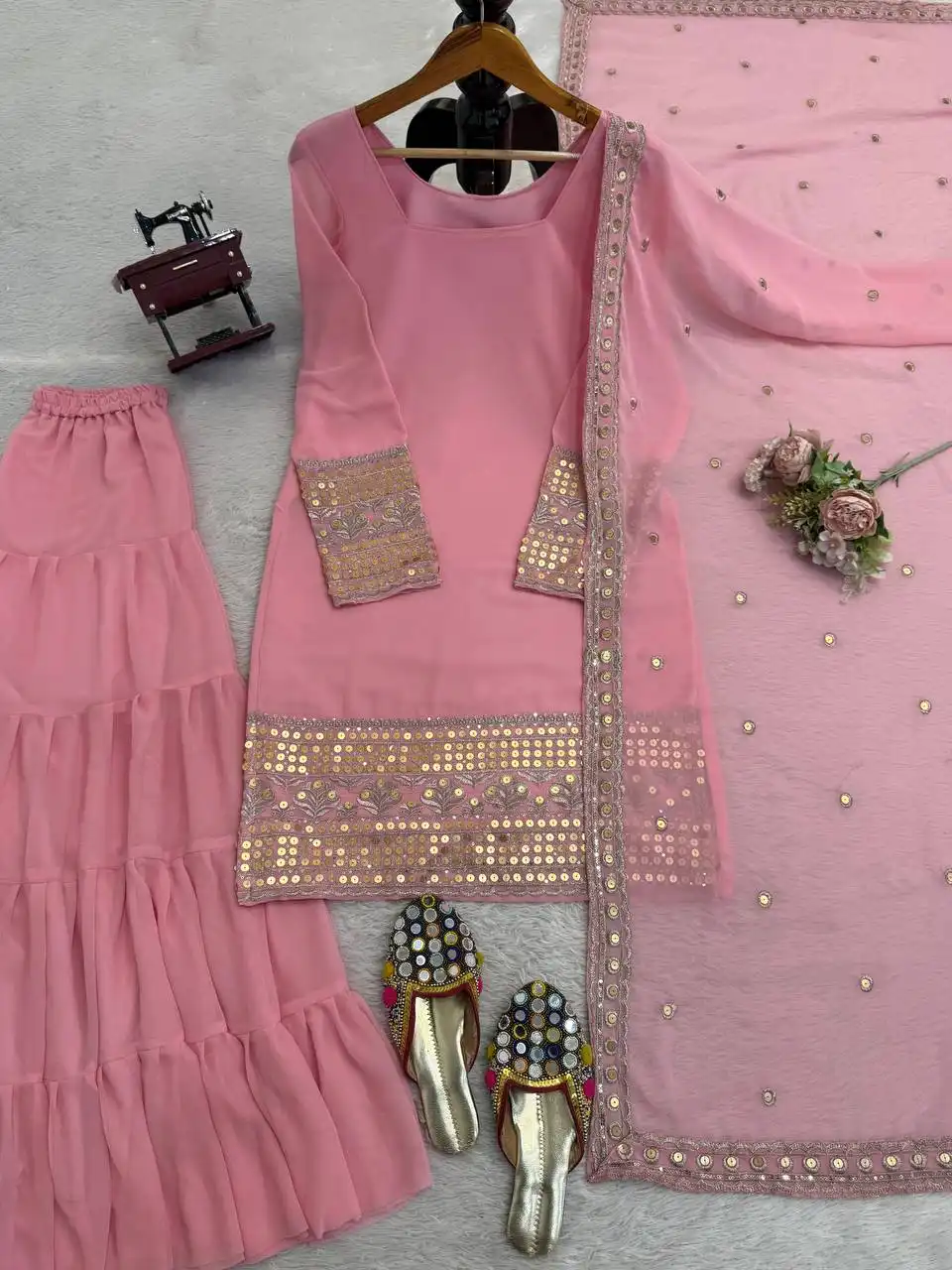 | Dupatta | Foux Gorgette, Work- thread with 9mm Sequnce with 4-Side work broder, Length- 2.2 meters |