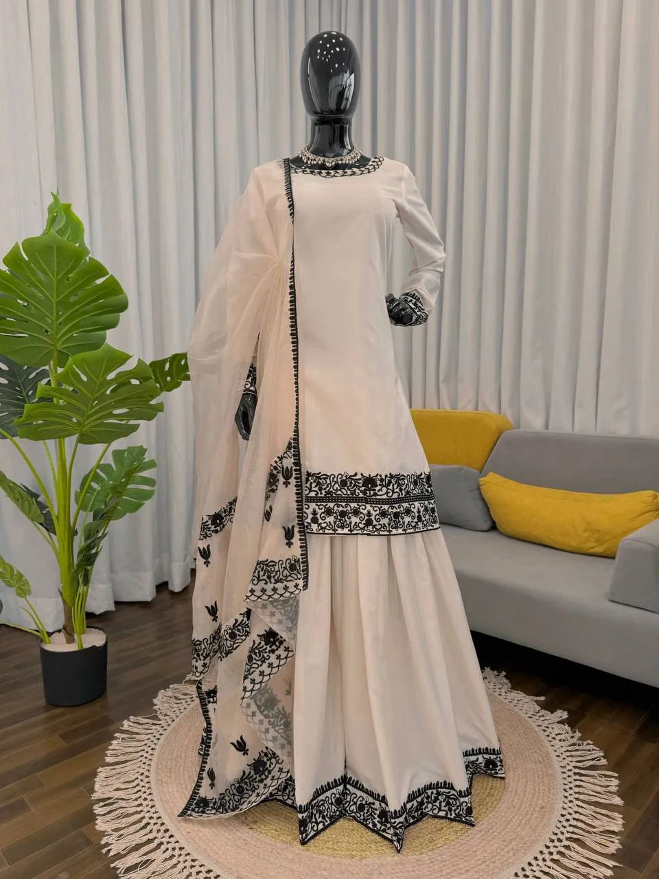 | Dupatta | Organza silk, Work- Thread with 4 -Side lace broder, Length- 2.2 meters |