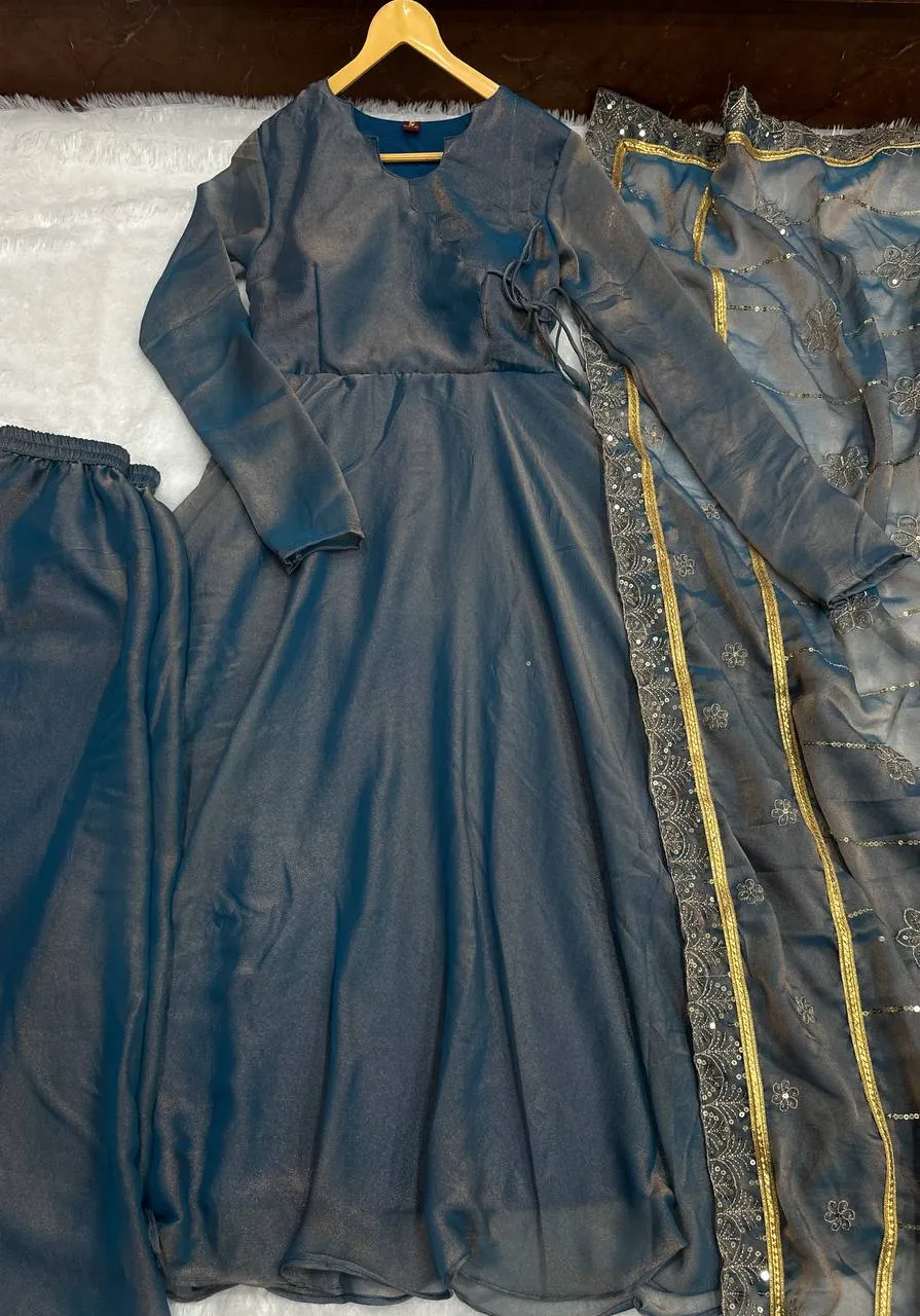 | Dupatta | French CxN Moss, Work- Embroidery Sequence Design Work |
