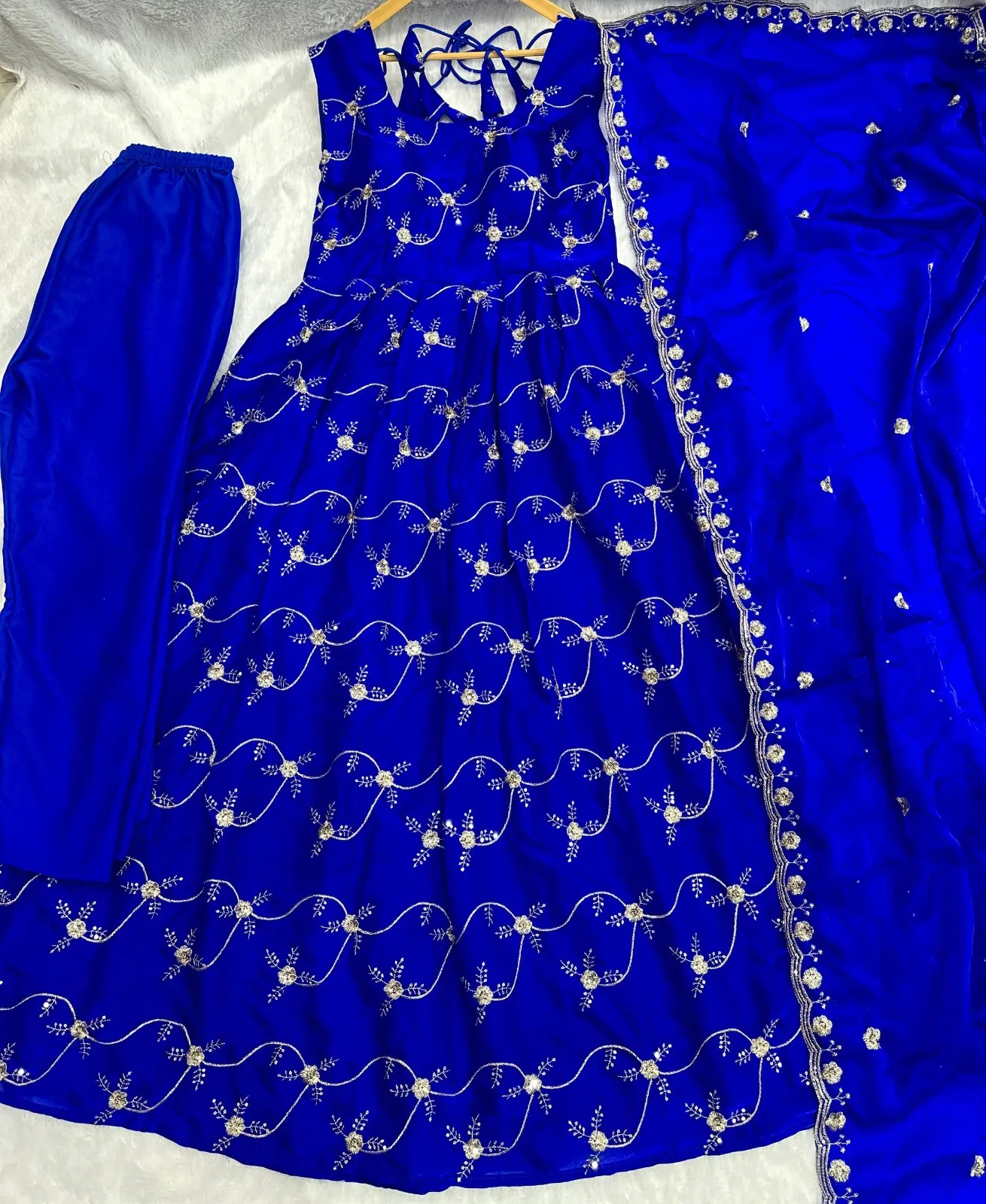 TopFandy Silk, Innner- Crap, Work- Embroidery Sequence Work, Flair- 3.5 Meter, Chest Size- M(38),L(40),XL(42),2XL(44), length- 52”(Sleeves gives separate)