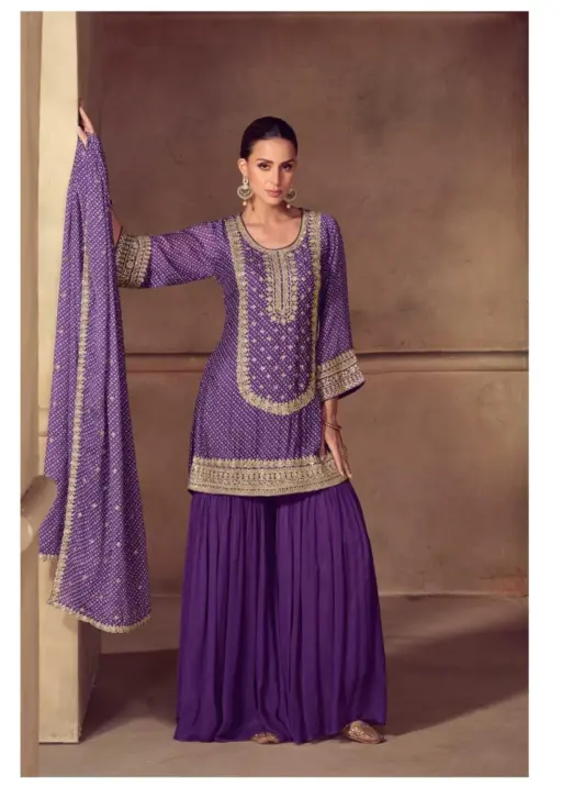 FFD Zilmil Purple Georgette Kurti Pant Dupatta Below 1000