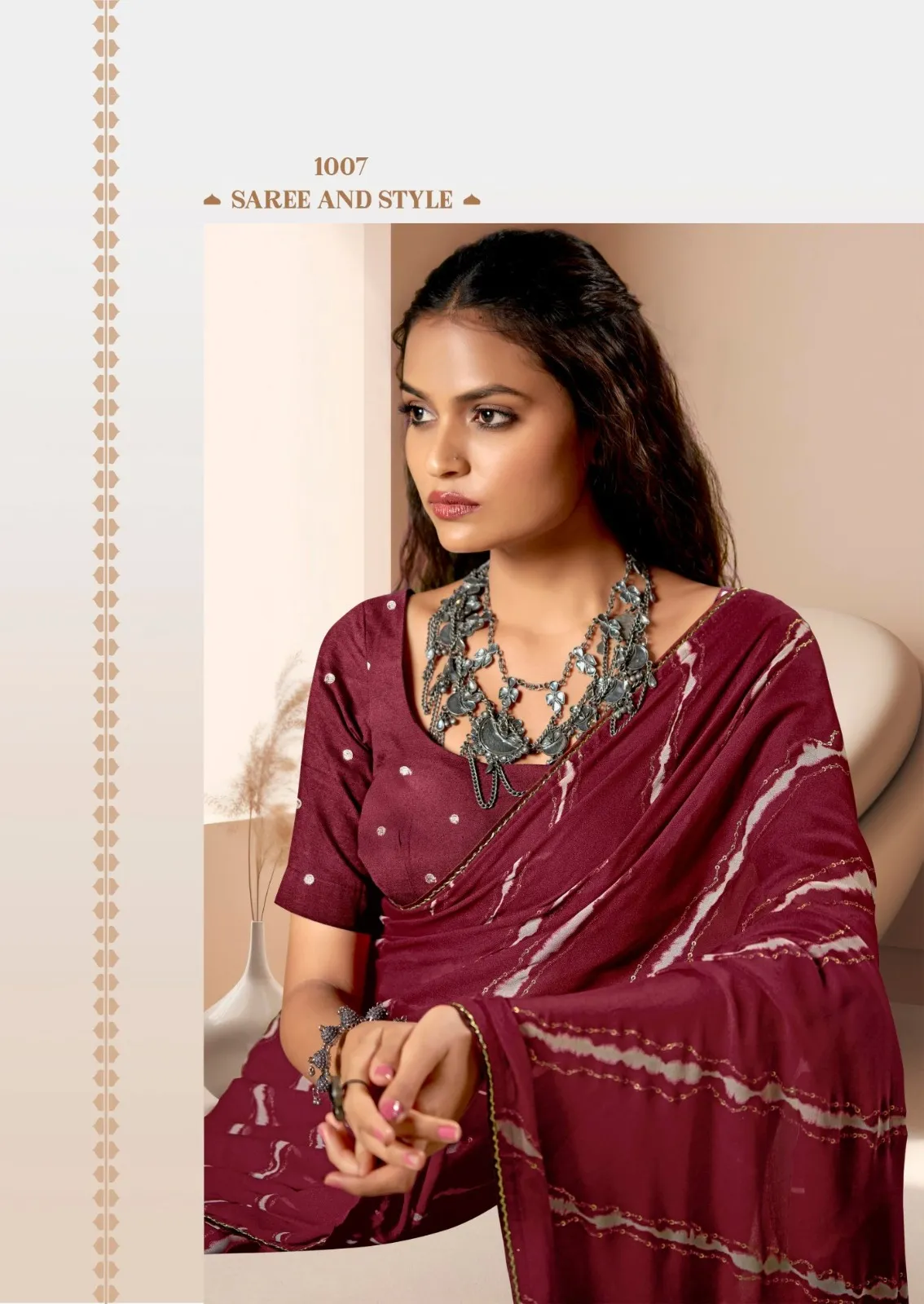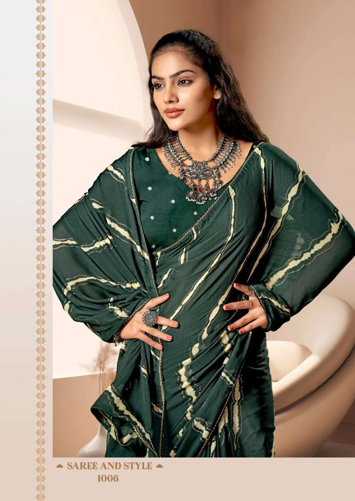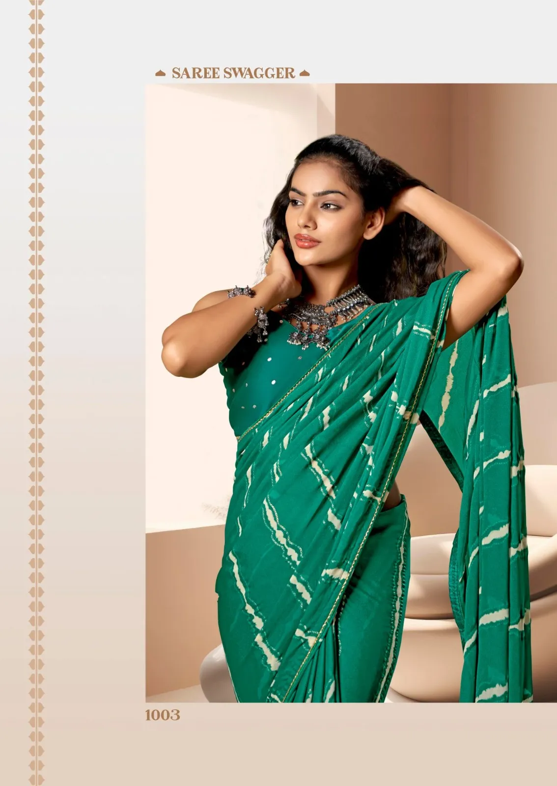 Kashvi Amrita Dull Moss Foil Printed Saree Collection