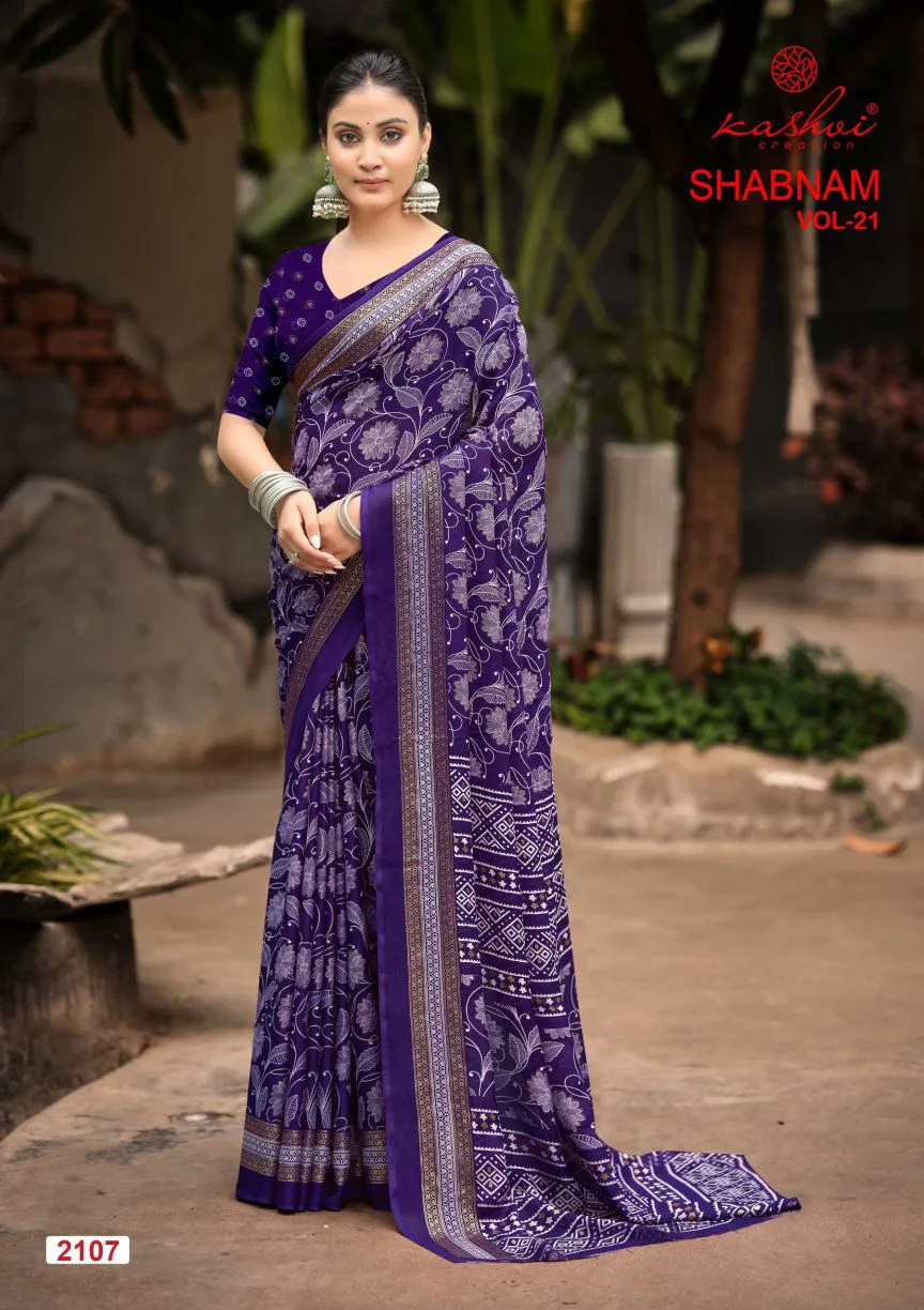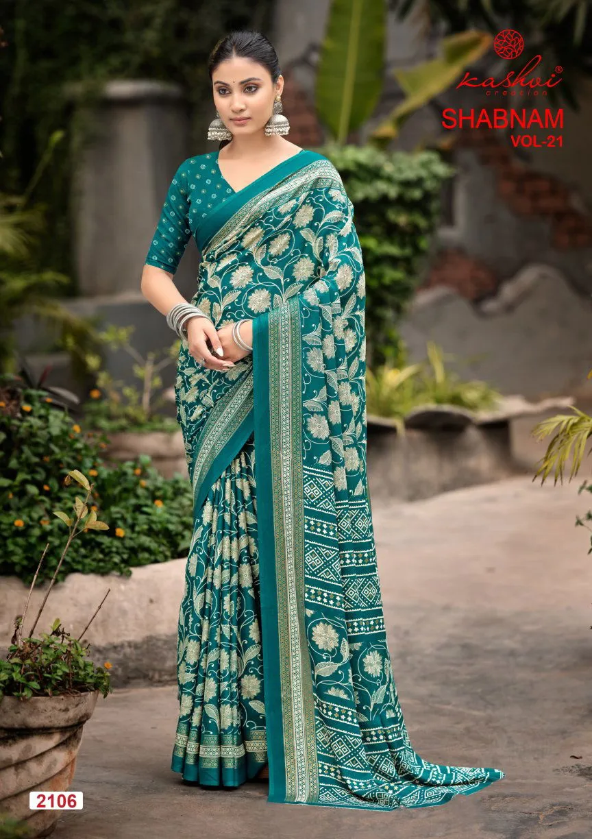 Kashvi Shabnam Vol 21 Dull Moss Foil Printed Fancy Saree Collection