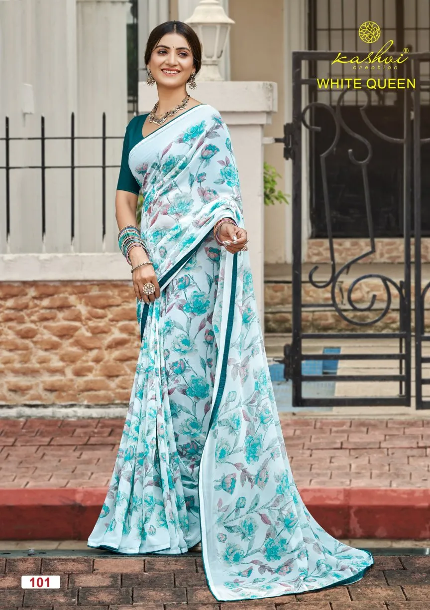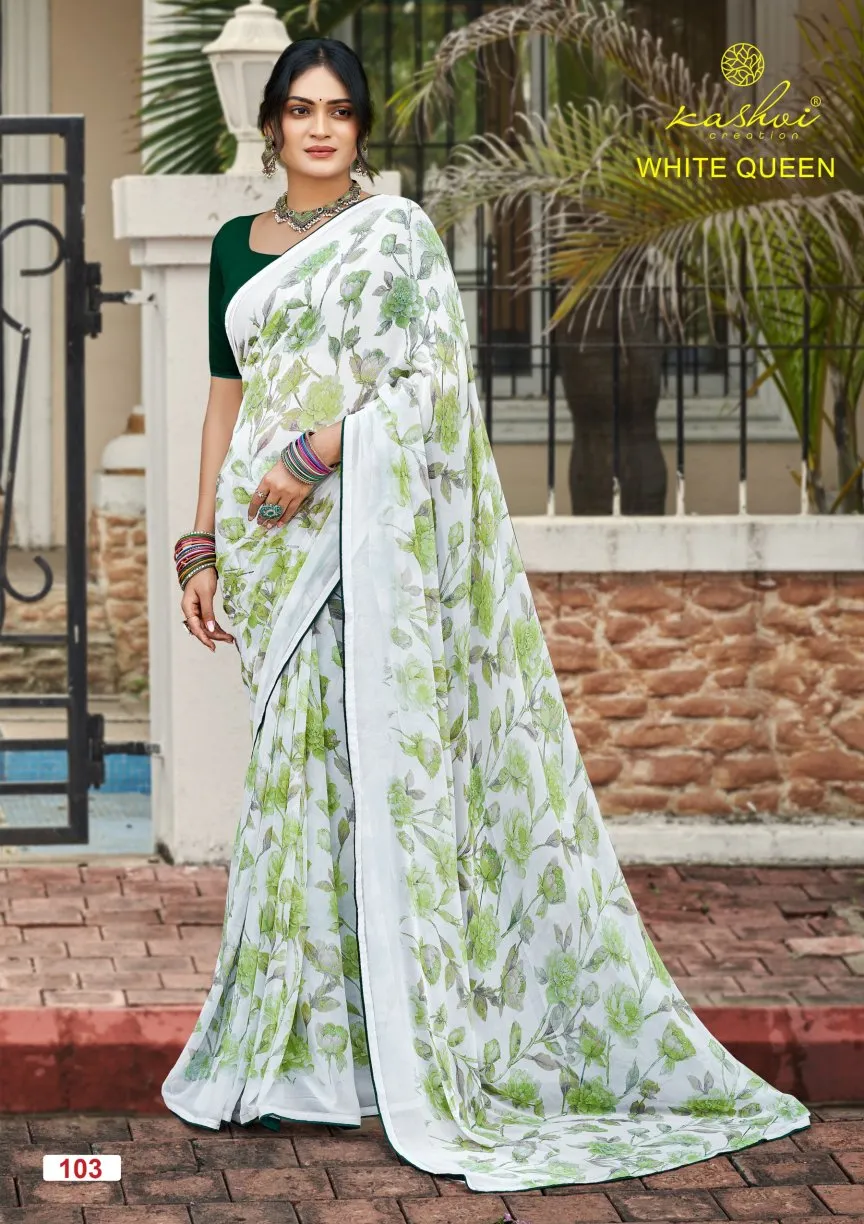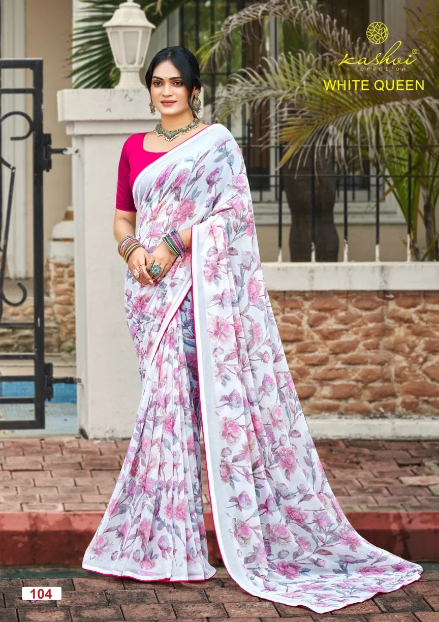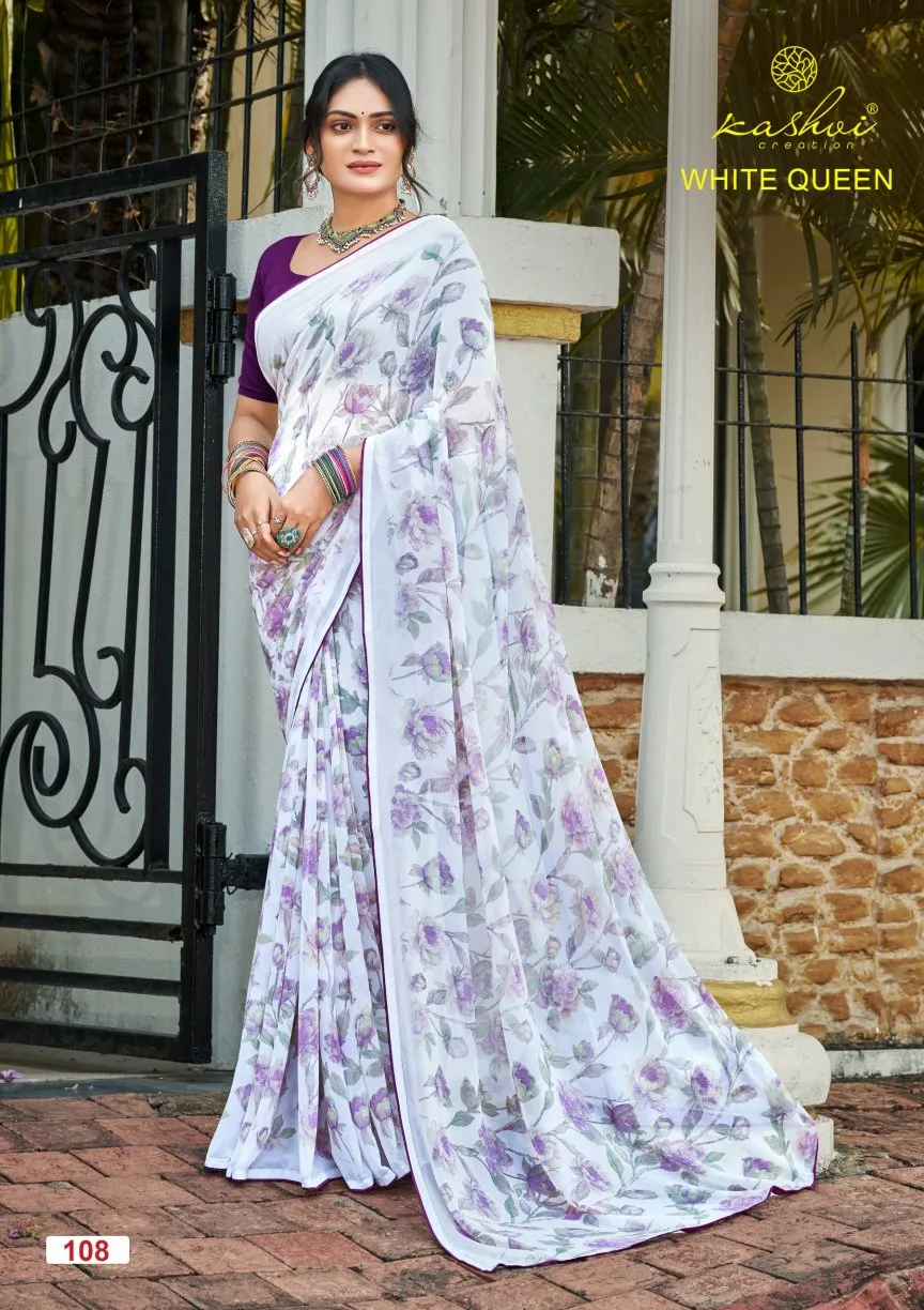 Kashvi White Queen Georgette Casual Wear Saree Collection