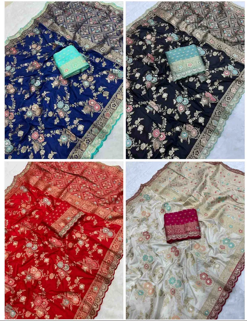 Kc 208 Soft Flowing Pure Dola Silk Wedding Wear Saree Collection