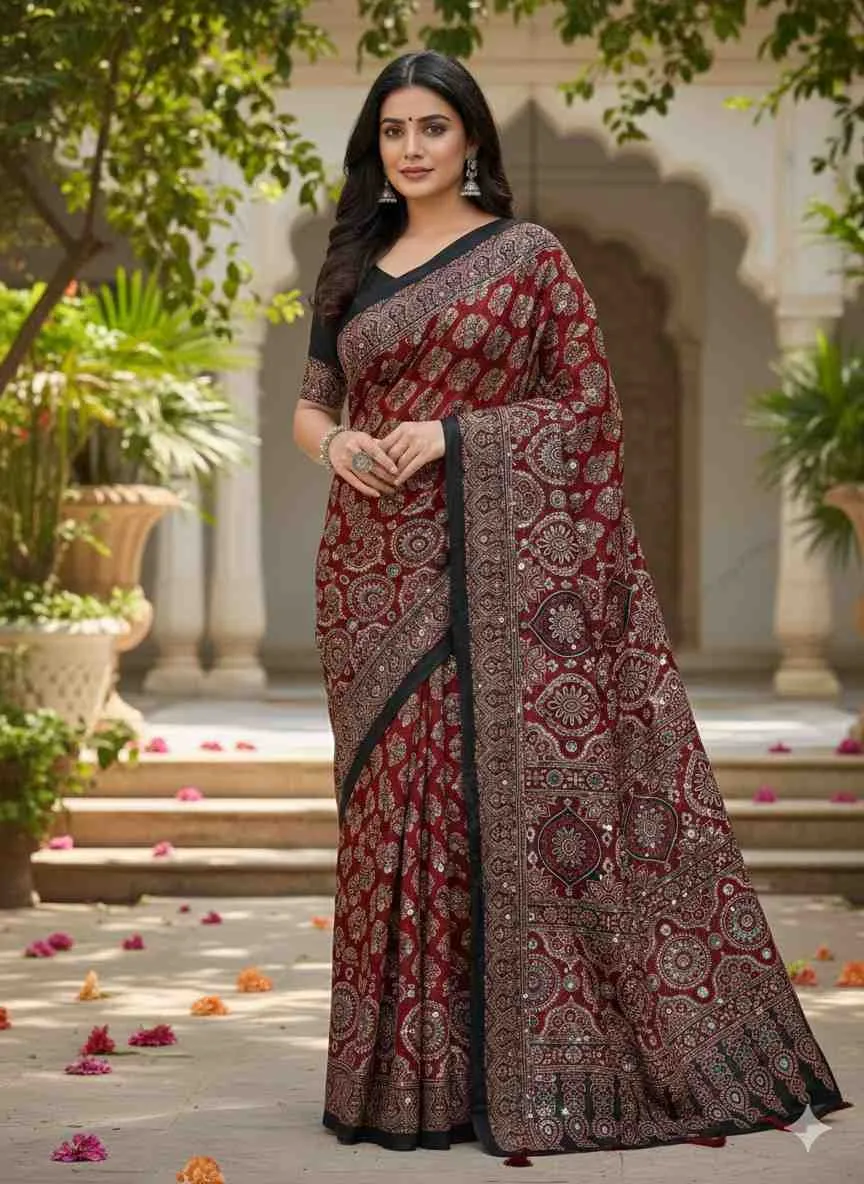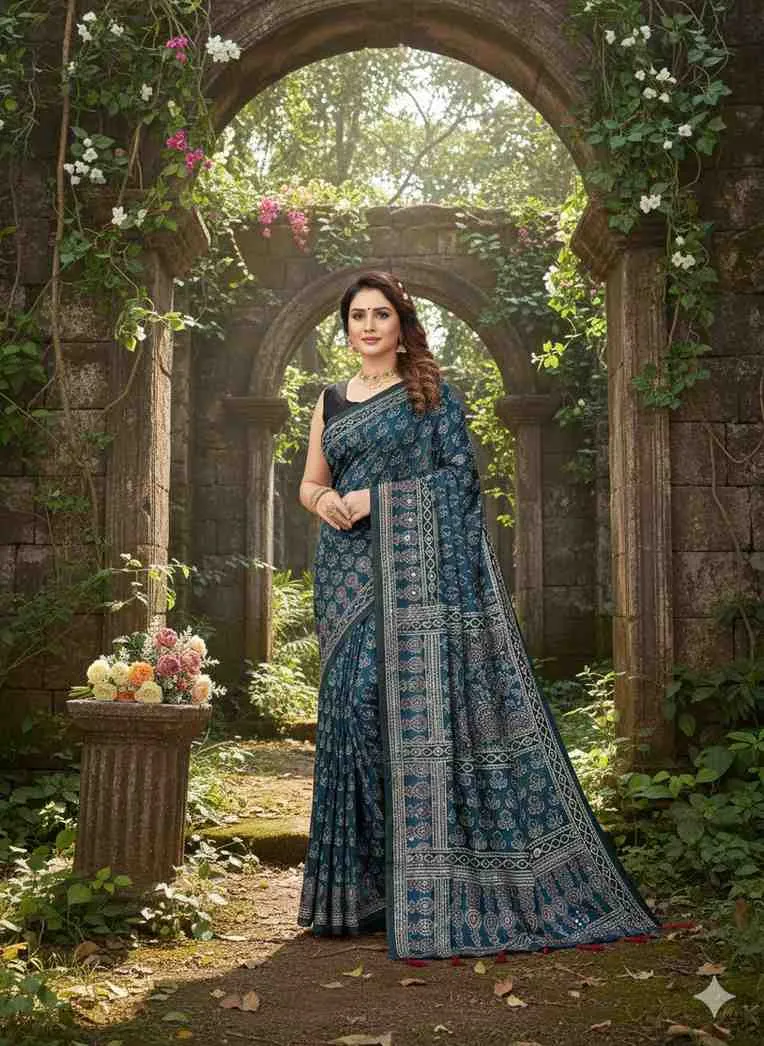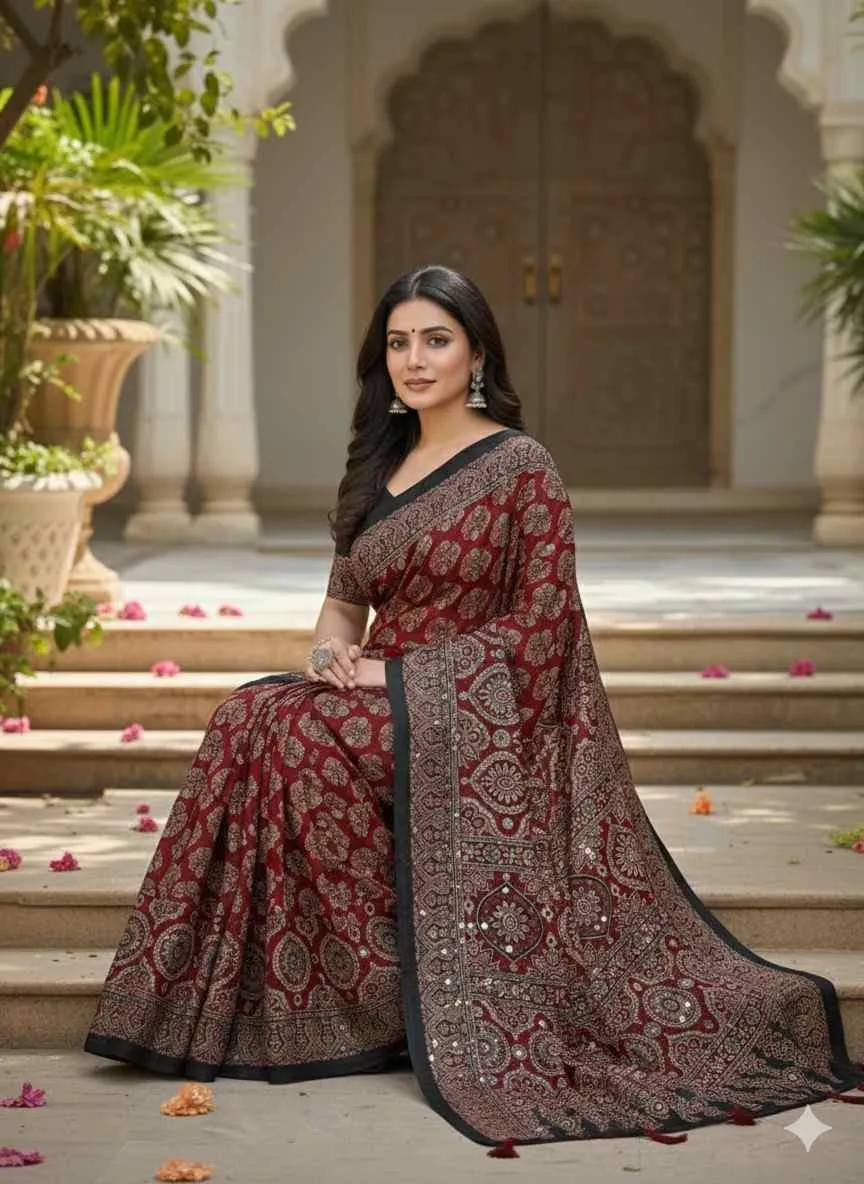 | Work | Ajrarakh Digital Print with Real Mirror Work |
