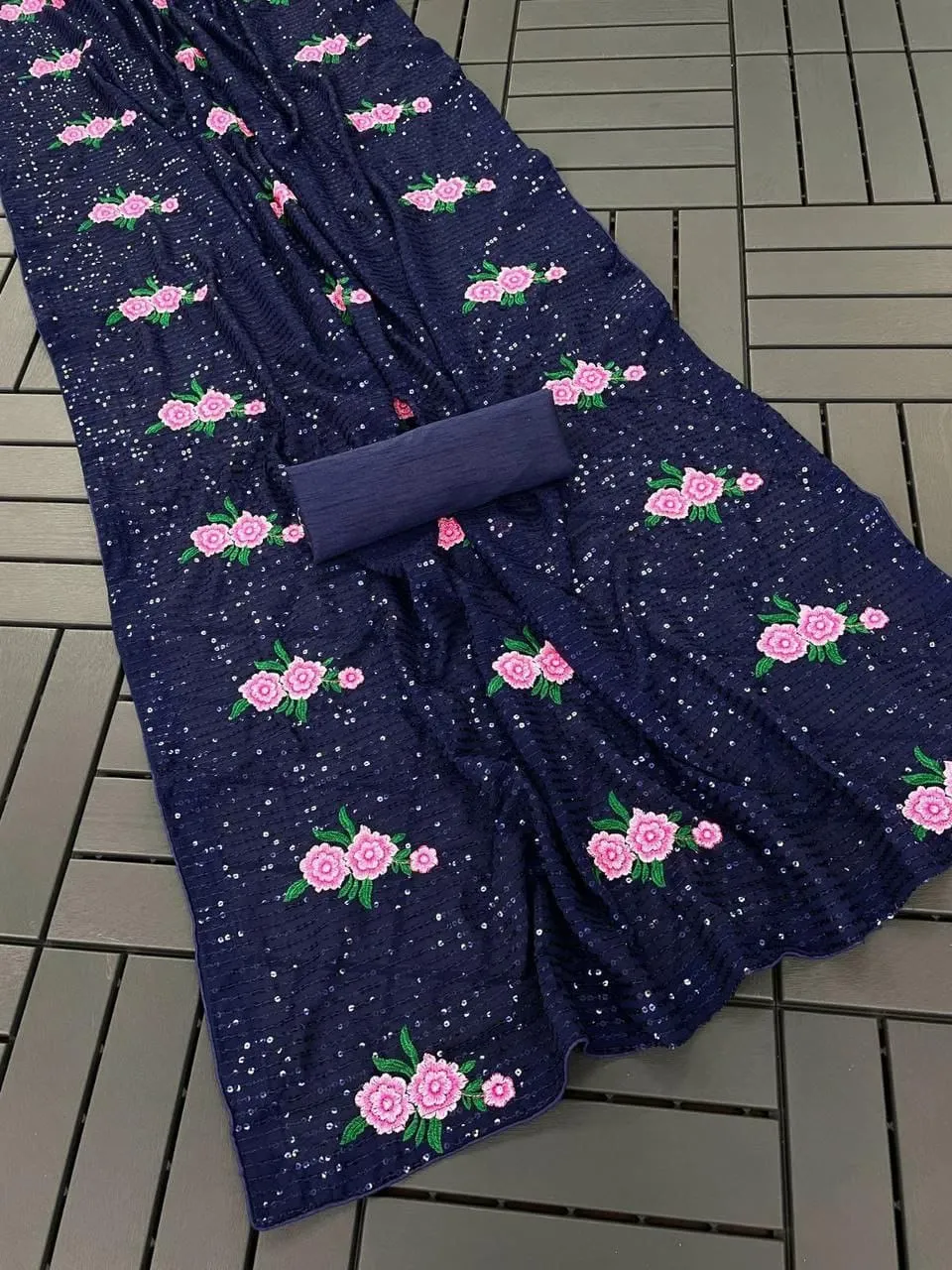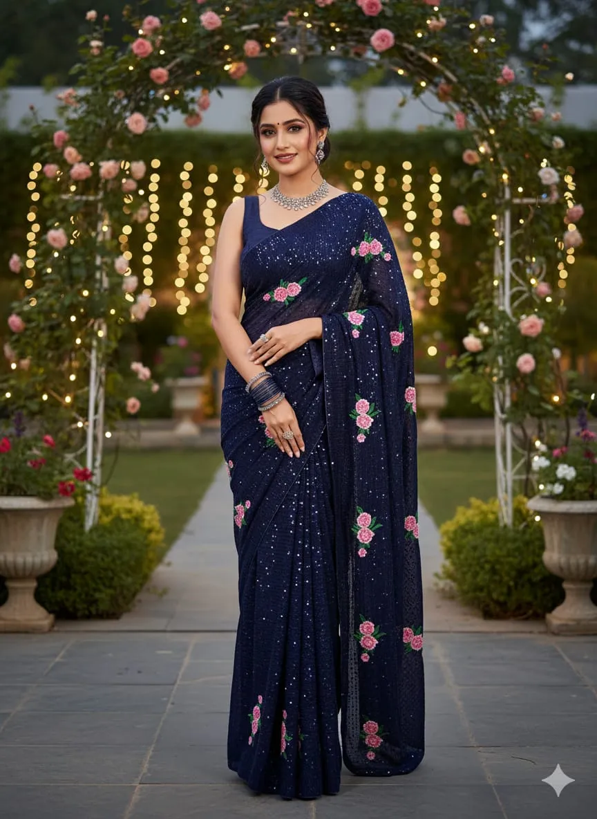 Kc 57 Georgette Multi Thread Sequence Worked Beautiful Saree Collection