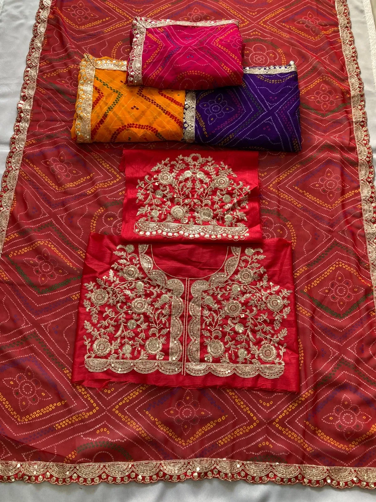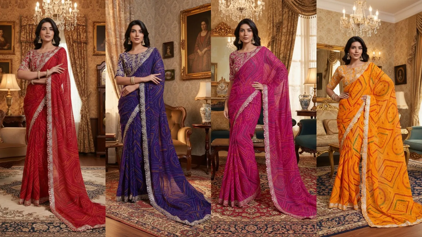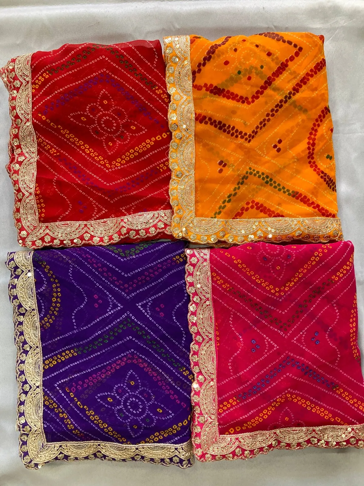 SareeGeorgette, Work- Bandhej Print With Cutwork Lace Border, Cut- 5.5 mtr
