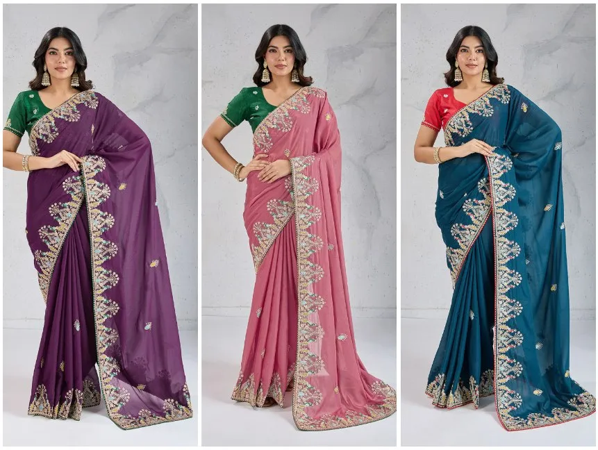 | Saree | Star Georgette silk, Work- Thread Sequins Embroidery Work, Cut- 5.5 mtr |