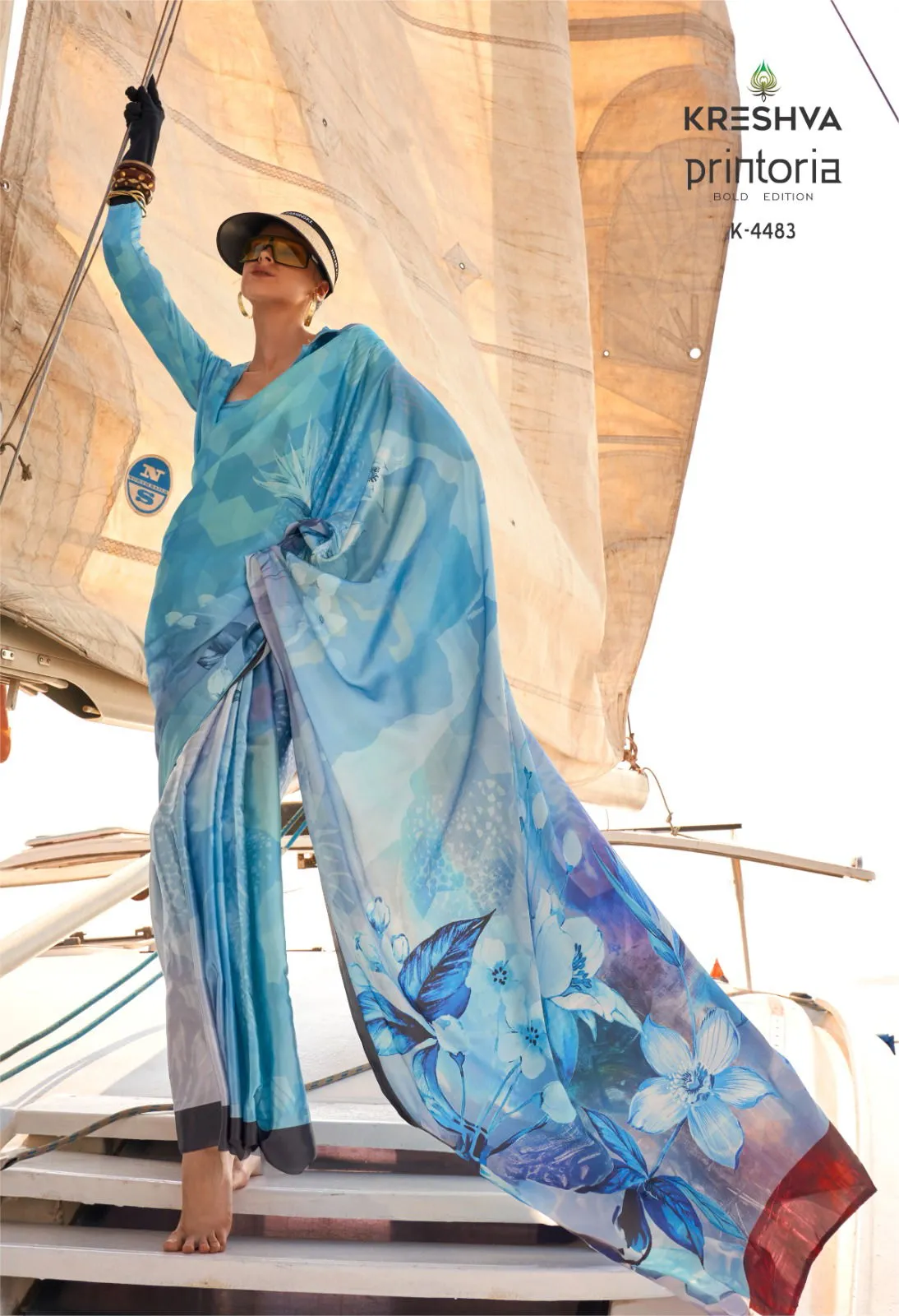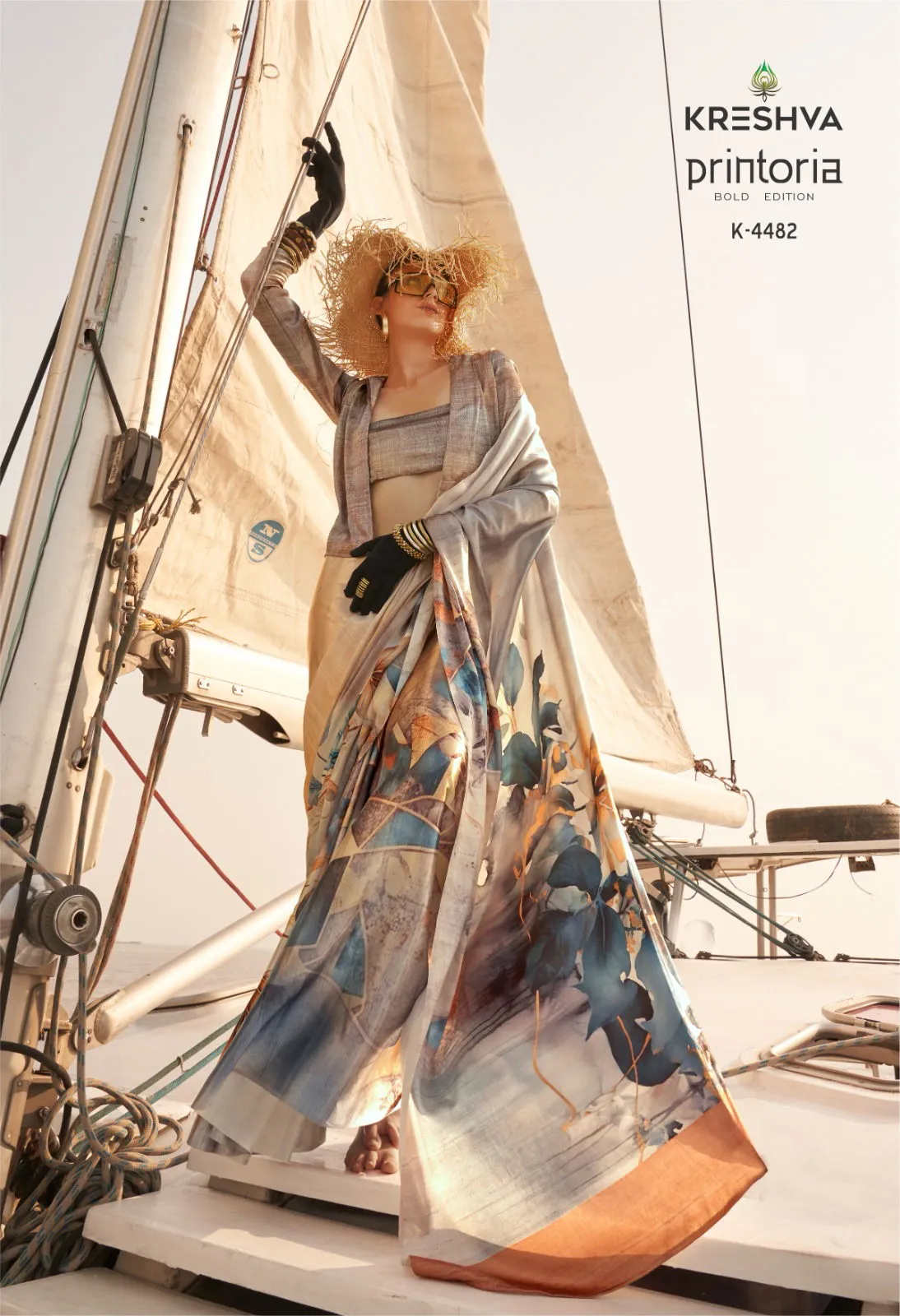 Kreshva Printoria Saitn Silk Octane Finish Saree Collection