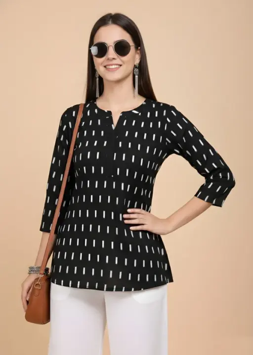 Shiv Vol 154 Black Cotton Blend Printed Short Top