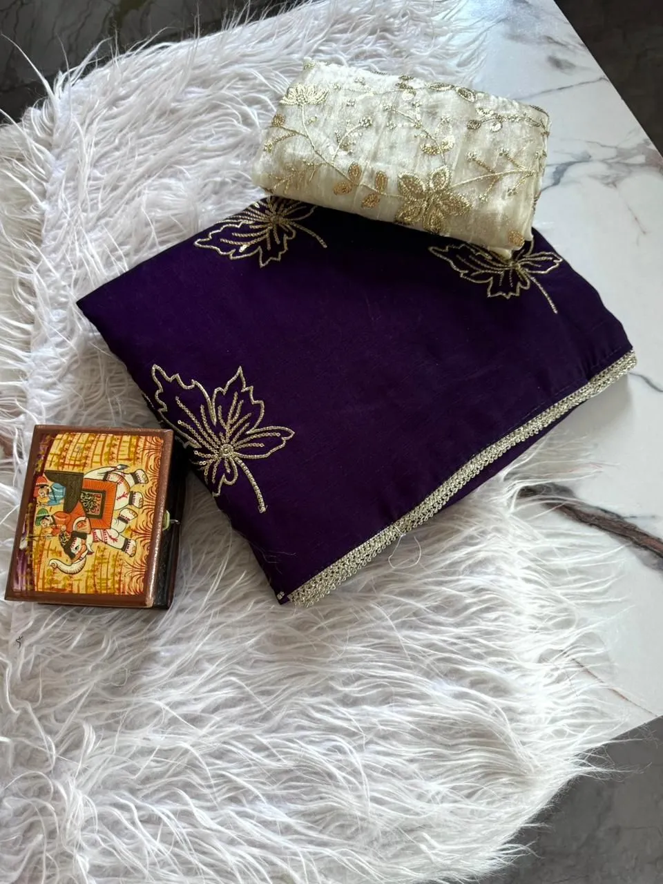 | Saree | Soft Vichitra silk with 3mm sequins embroidery work with readymade lace border, Length- 5.60 mtr |