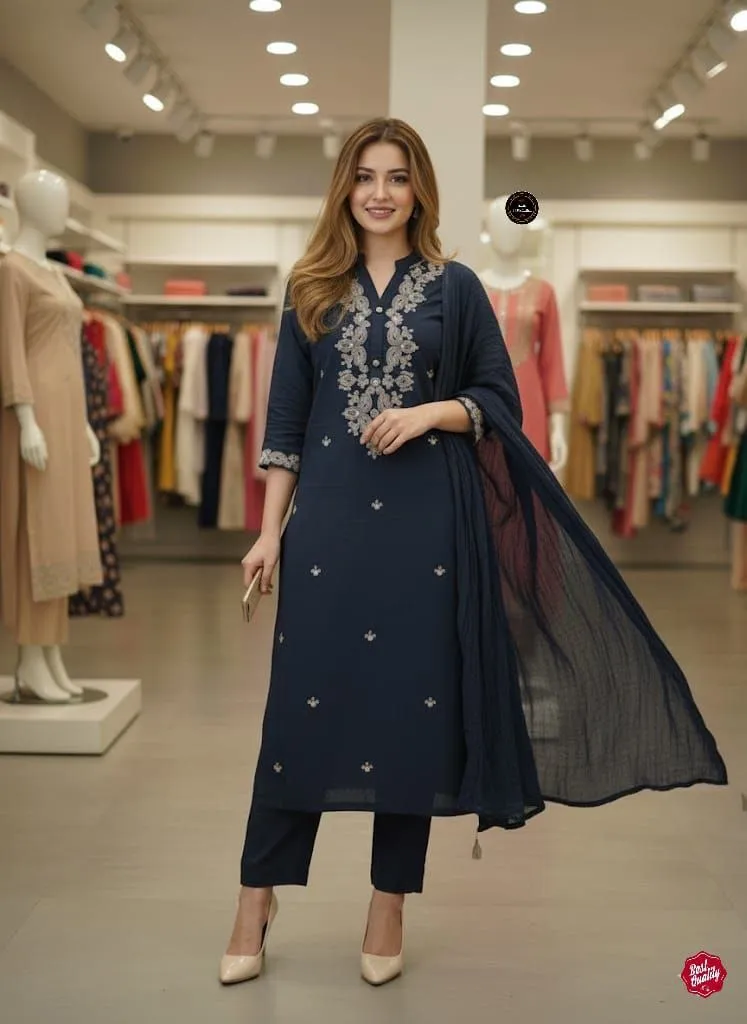 | Top | Primium Rayon Slub, Length- 44+, Work- Embroidery Coding Work, Mandarin Collar Neck |