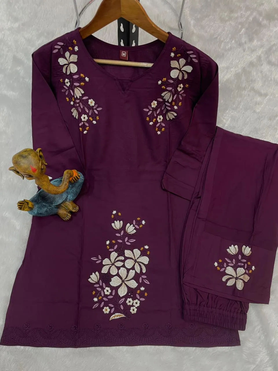 | Bottom | Heavy viscose Rayon, Work- Multi Embroidery Thread Work, Fit- Straight-Cut Pant for a sleek look, Length- 39 |