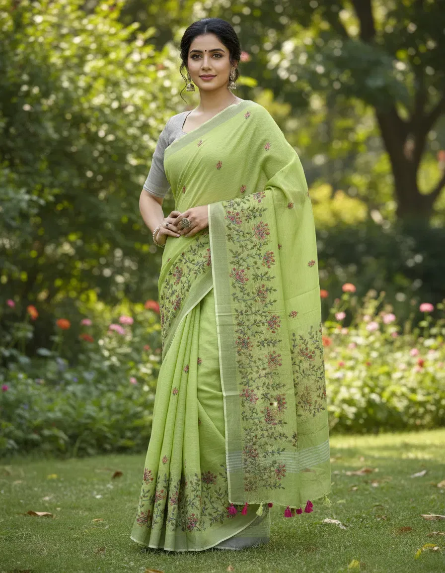 Mahek 211 Linen Cotton Festival Wear Embroidery Saree Collection