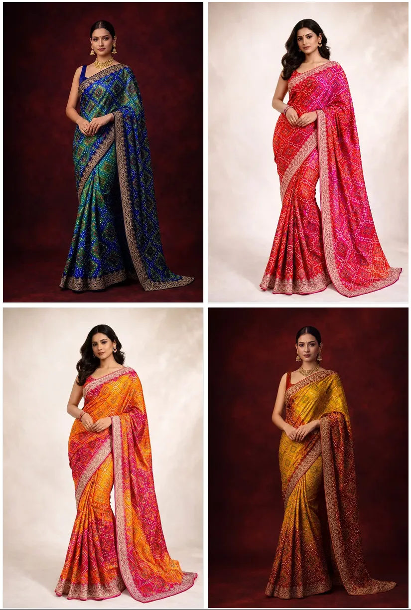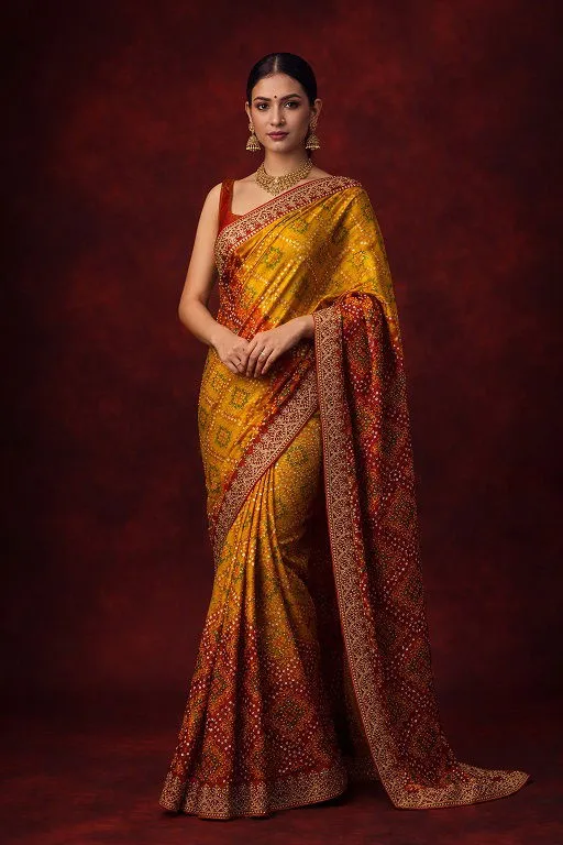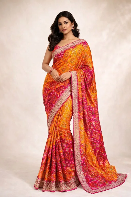 Mahek 215 Chinon Silk Bandhani Codding Stylish Saree Collection