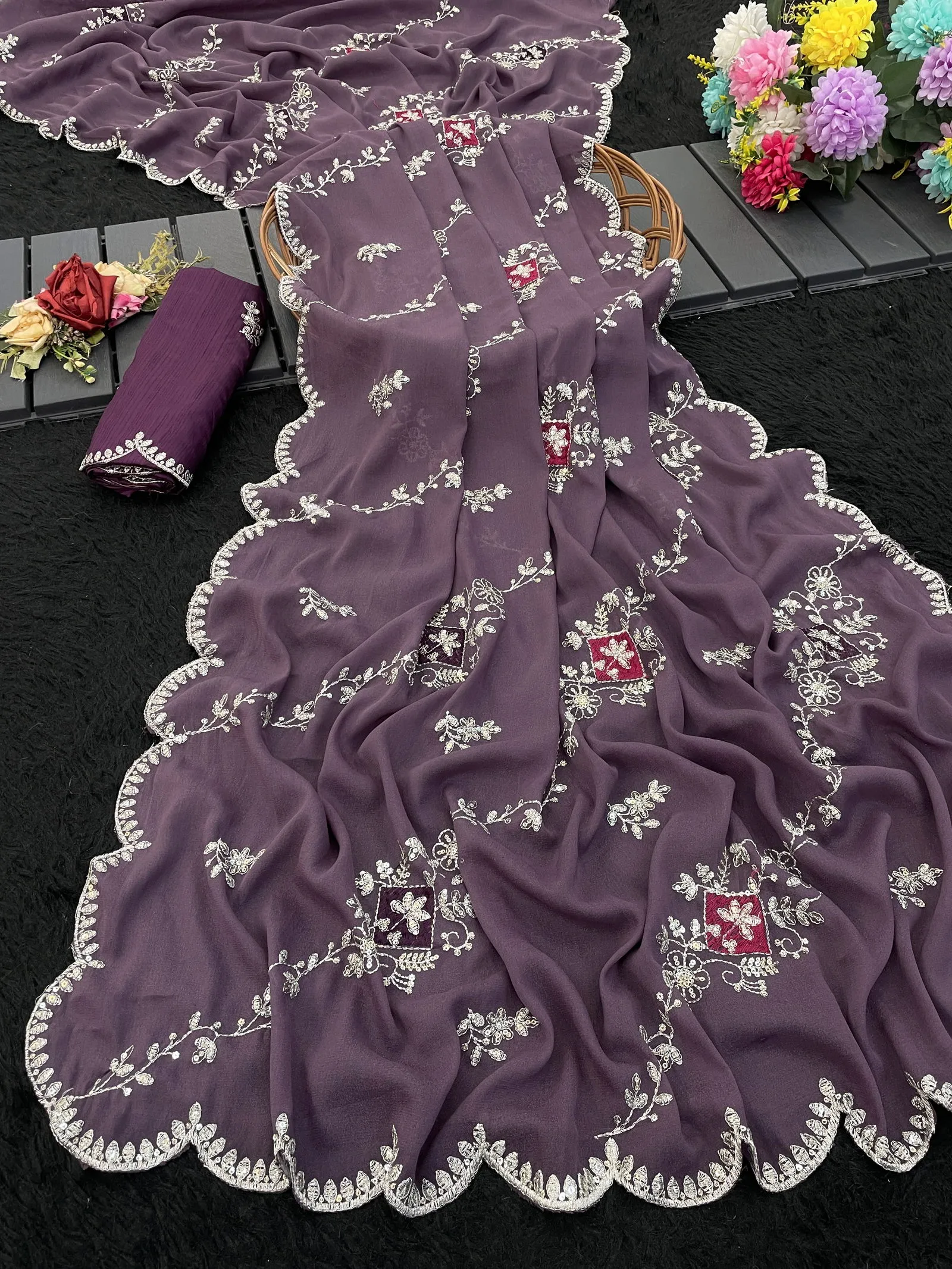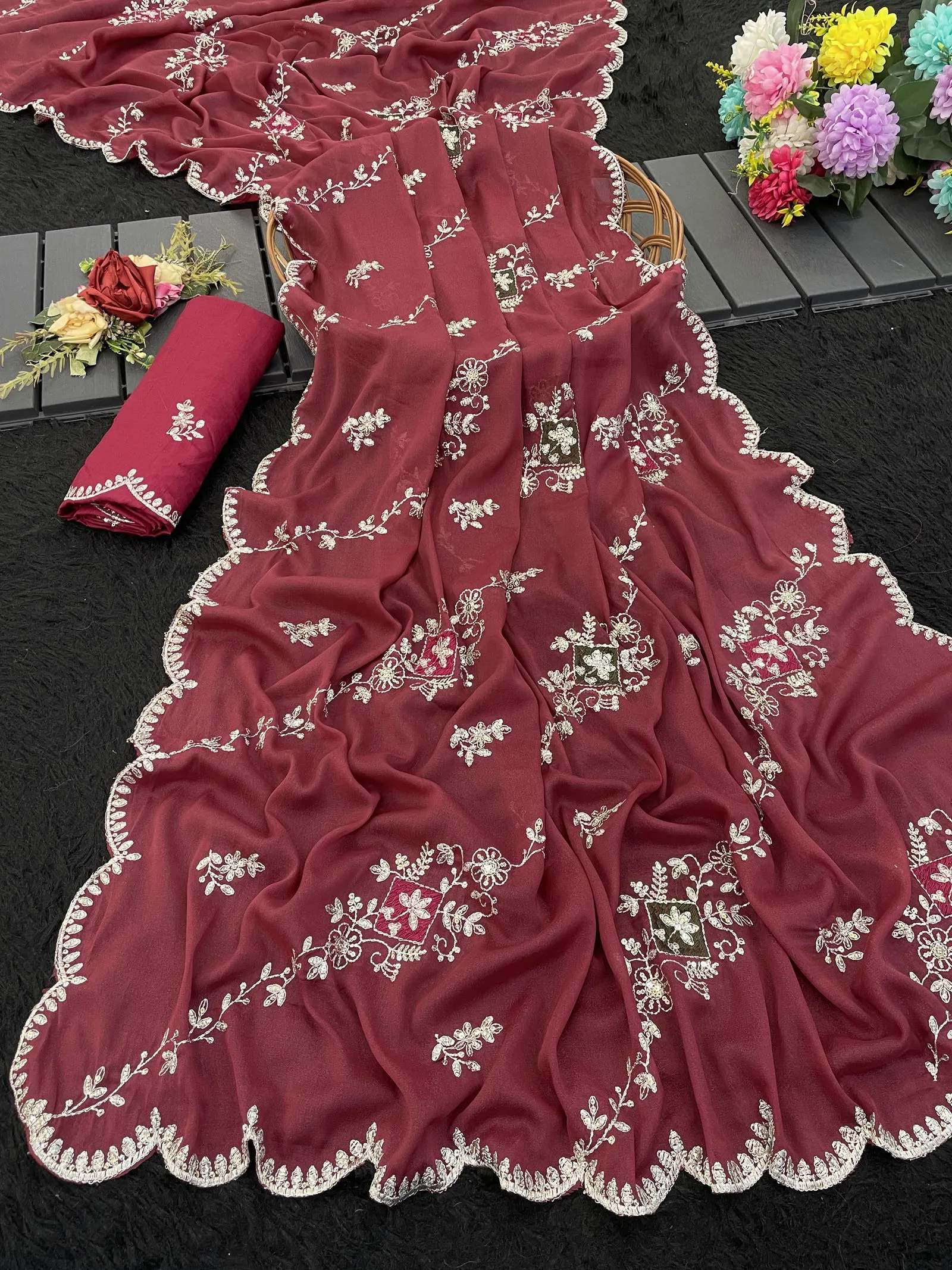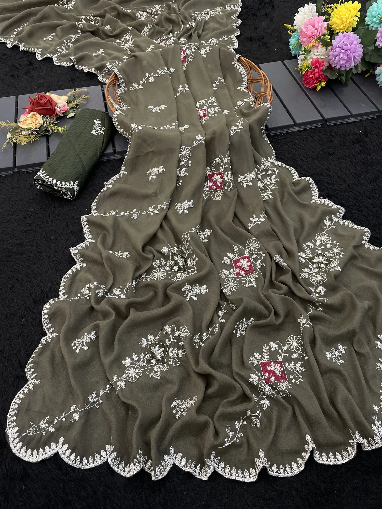 Modal 6358 Georgette Embroidered Designer Saree Collection
