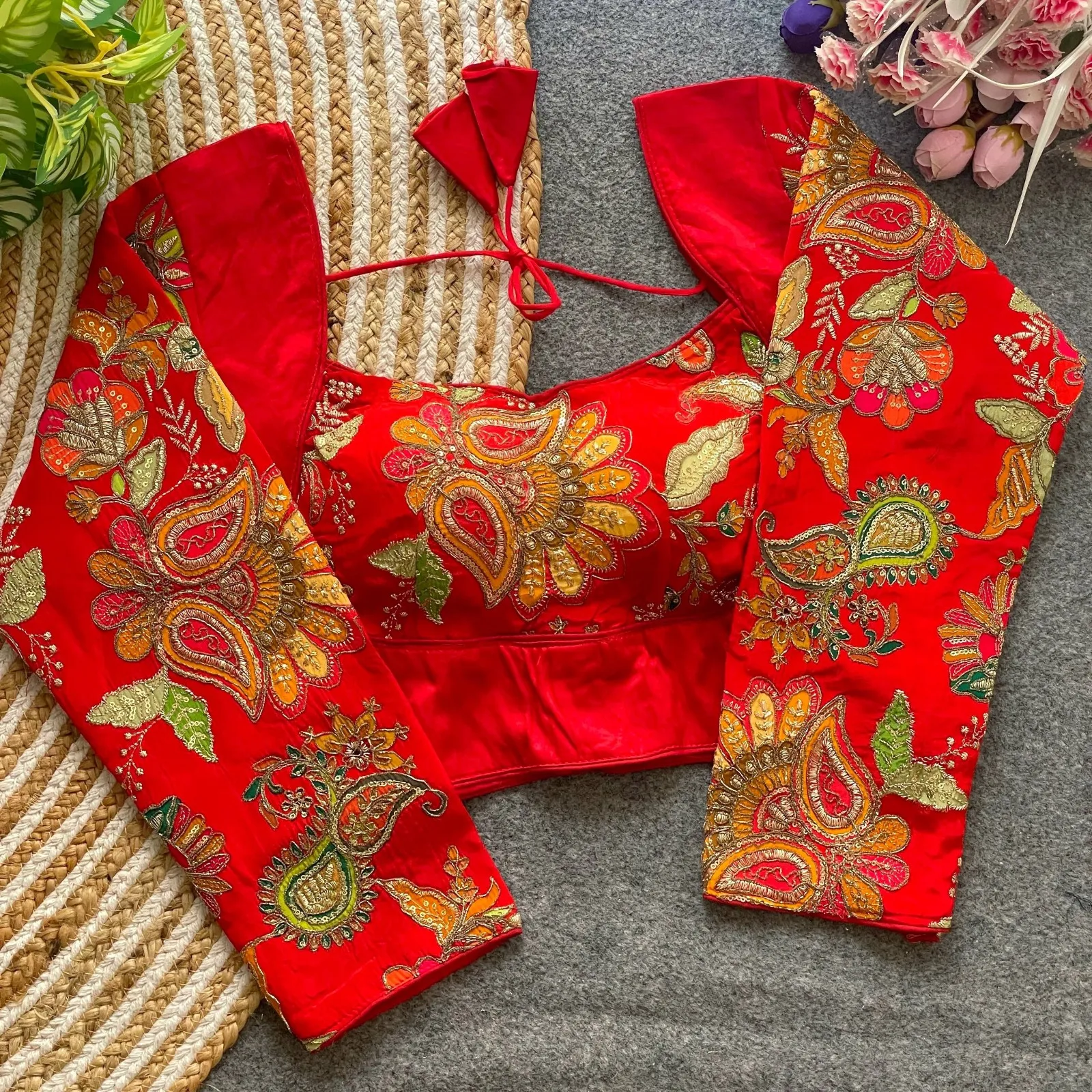 | Blouse | Gajji Silk & Pure Viscose Natural Creap, Work- Premium Position Print with Fancy Embroidery Touch, Sleeve- 20-inch Full Sleeve Included, Design Highlight- Stitched with Fancy Mumtaj Pattern with Premium Pattern Finishing, Back Style- Back Hook with Traditional Dori Closure, Size- Free Size (Ready 38â | Alterable 32â to 42â) |