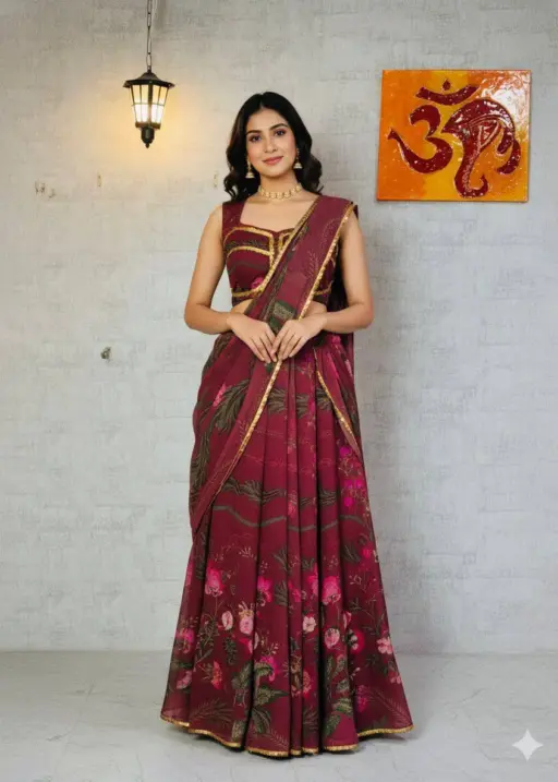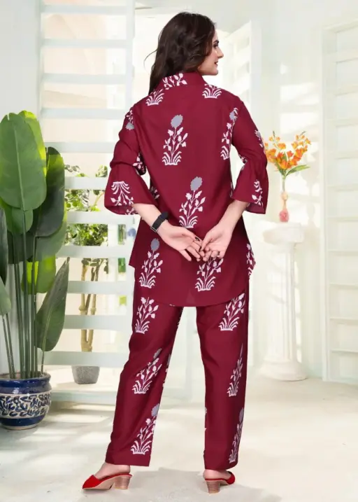 AEA 574 Maroon Rayon Printed Co Ord Set