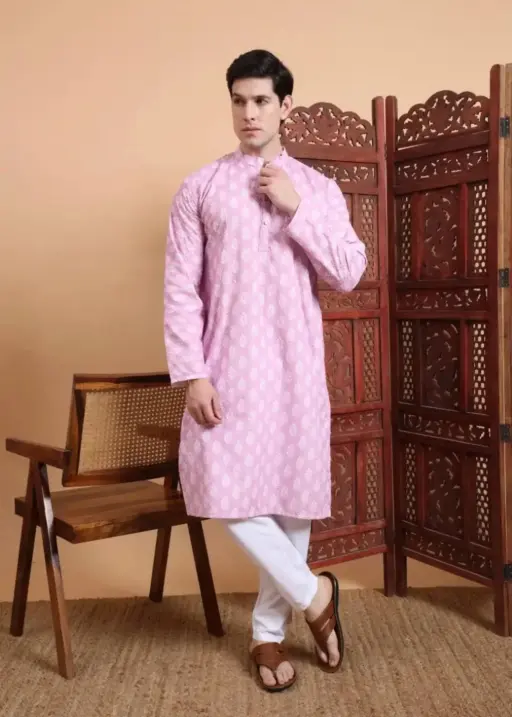 Kiara Killer 10 Pink Cotton Digital Crochet Men’s Kurta