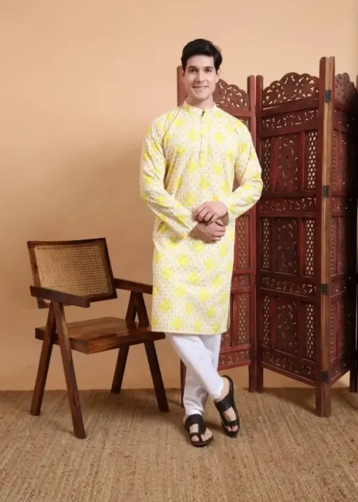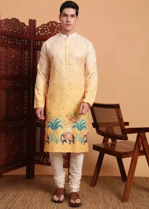 Kiara Killer 10 Yellow Cotton Digital Crochet Men’s Kurta 2025