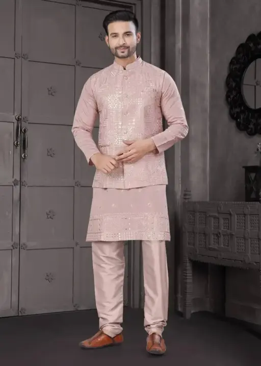 Shyam Vol 45Baby Pink Wedding Kurta Pajama With Koti