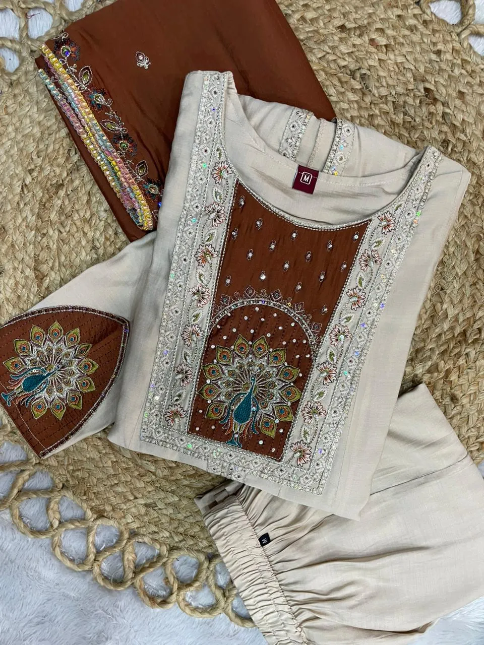 | Product | Lila 150 Roman Silk Cream Anarkali Kurti With Palazzo Set |