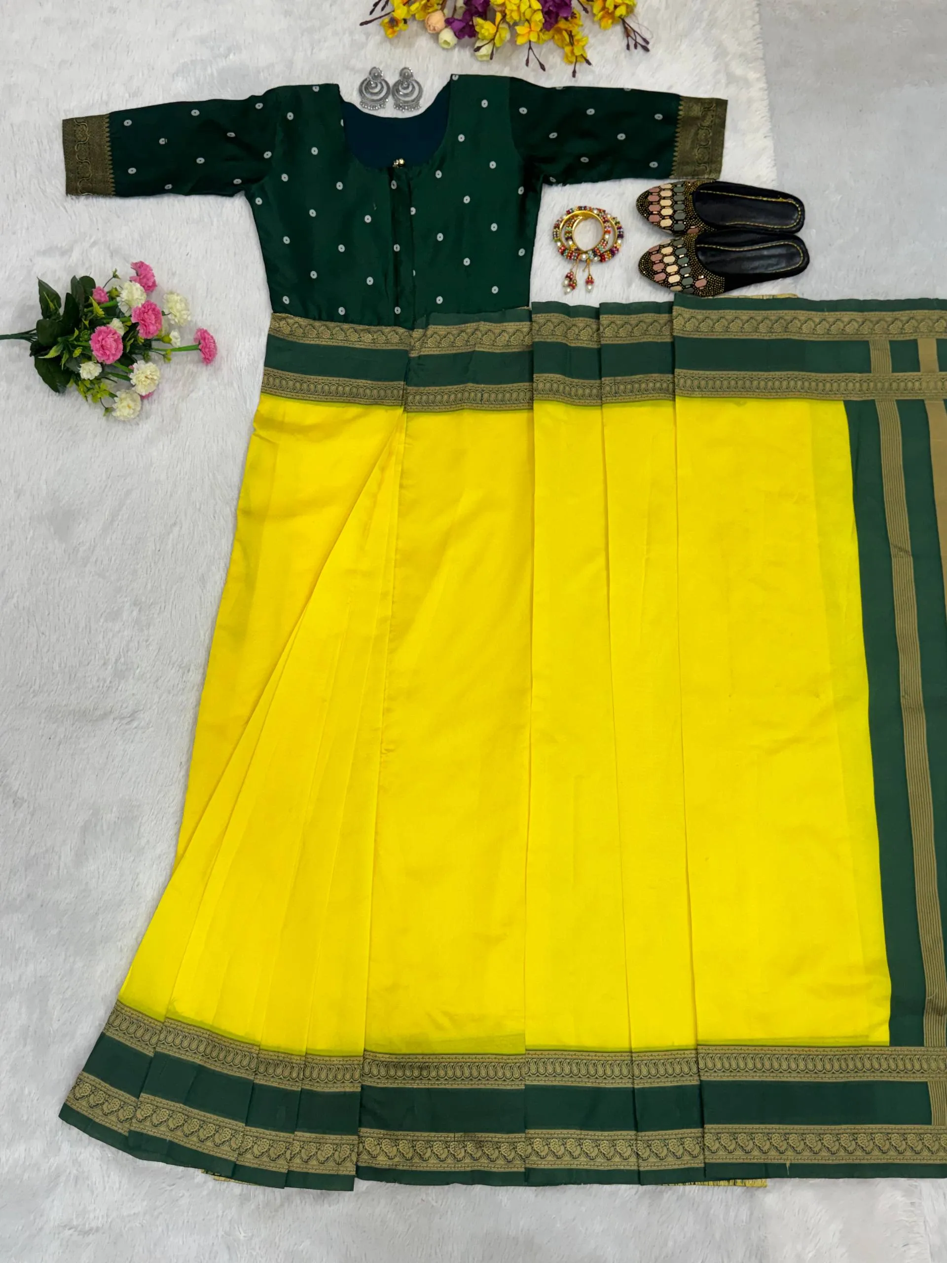 Product SGT 237 Mysore Silk Yellow Readymade Zip Gown Saree Wedding Collection