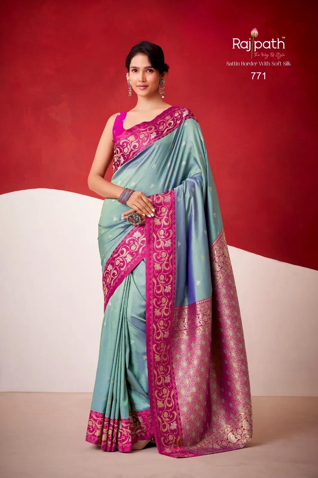 Rajpath Sindhu Ghat Zari Weaving Satin Silk Saree Collection