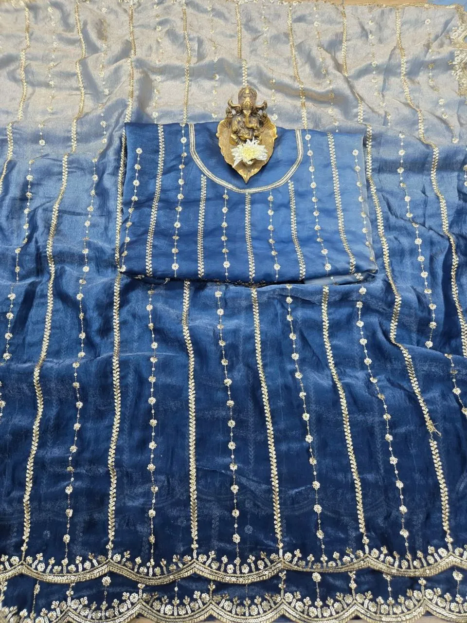 | Saree | Fendy Sattin pending Dual Shad Saree Multi Sequence Emrodairy Work |