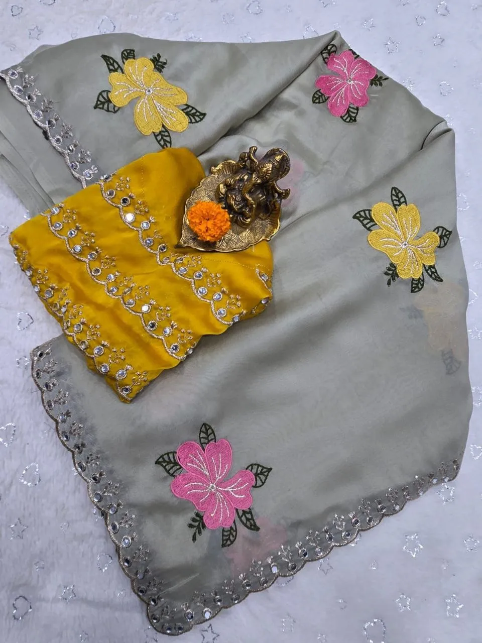 | Saree | Rangoli Silk, LENGTH- 5.50 Mtr, WORK- Original jari riyal mirror work |