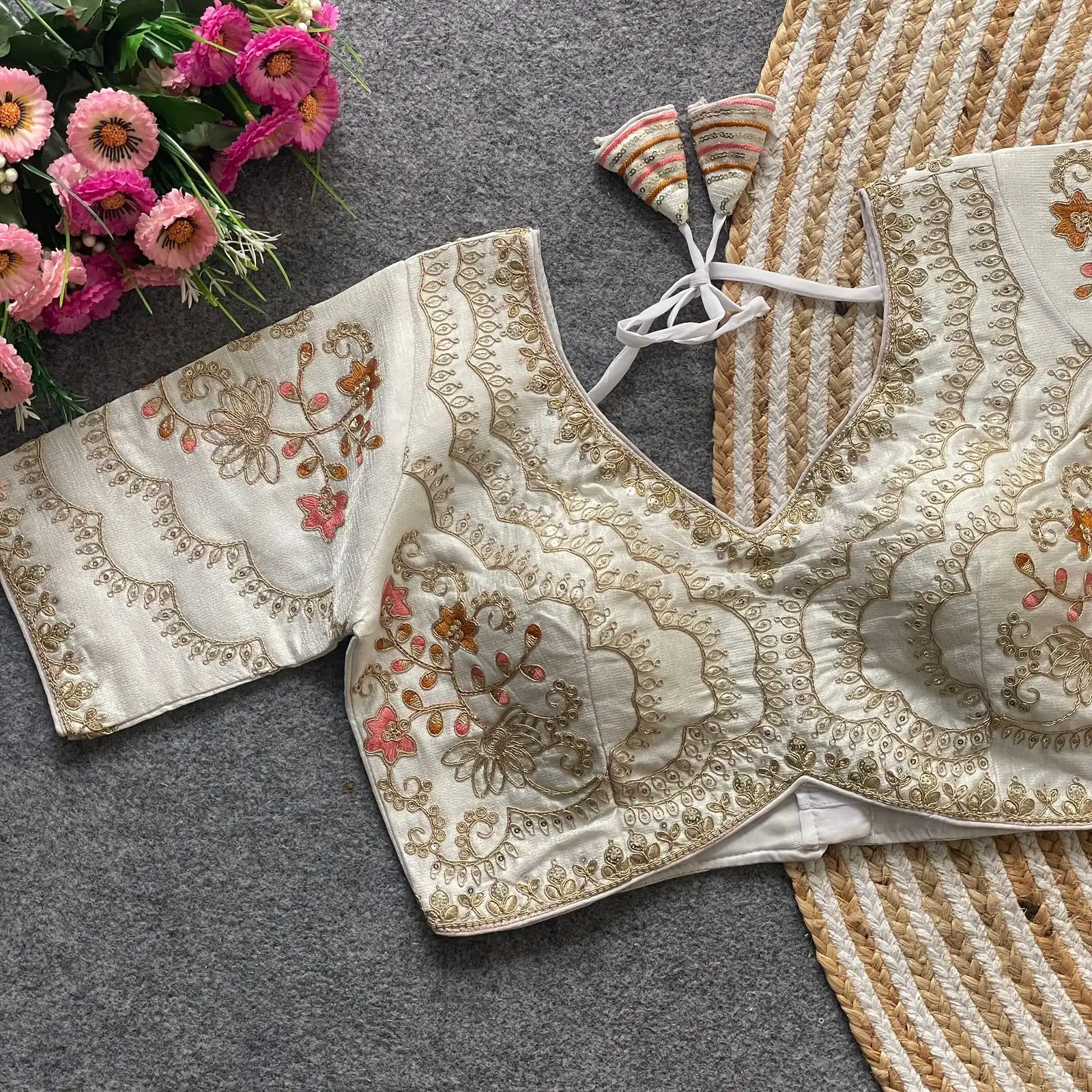 Ruhi Beautiful White Pearl Moti Spaghetti Blouse