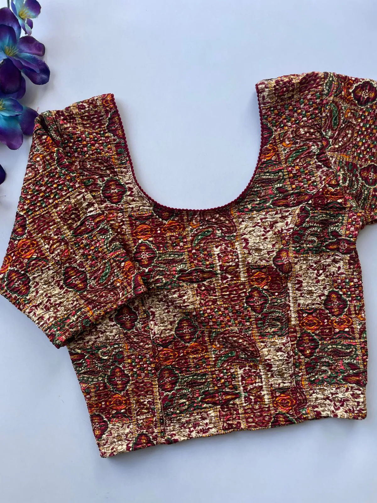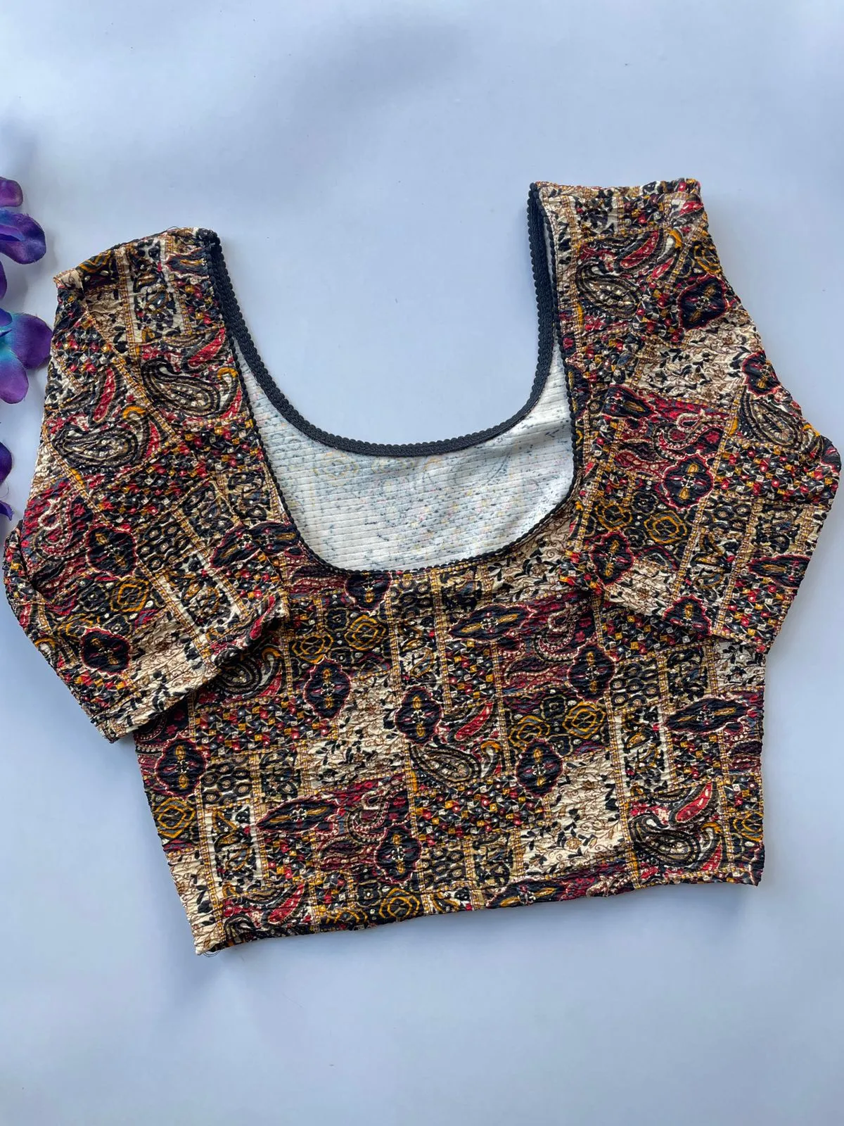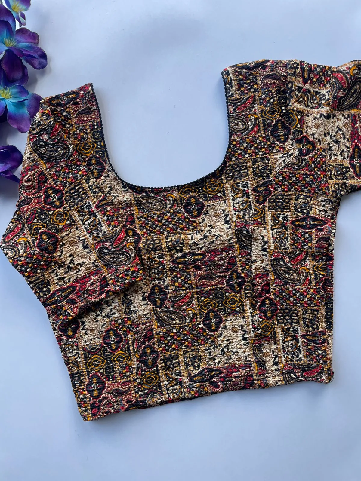 | Blouse | STRETCHABL COTTON KALAMKARI PRINT, Slive- 9inch SLIVE ,Back Pattern- ROUND SHAPE |