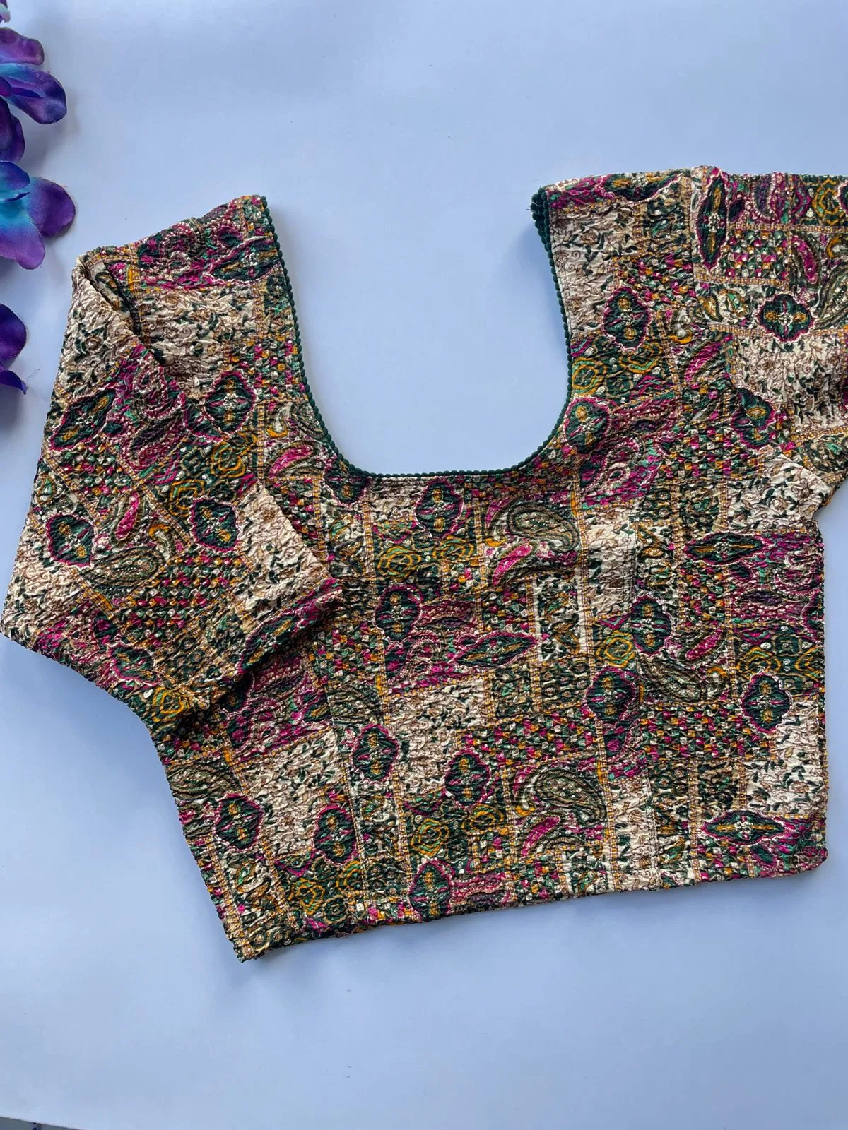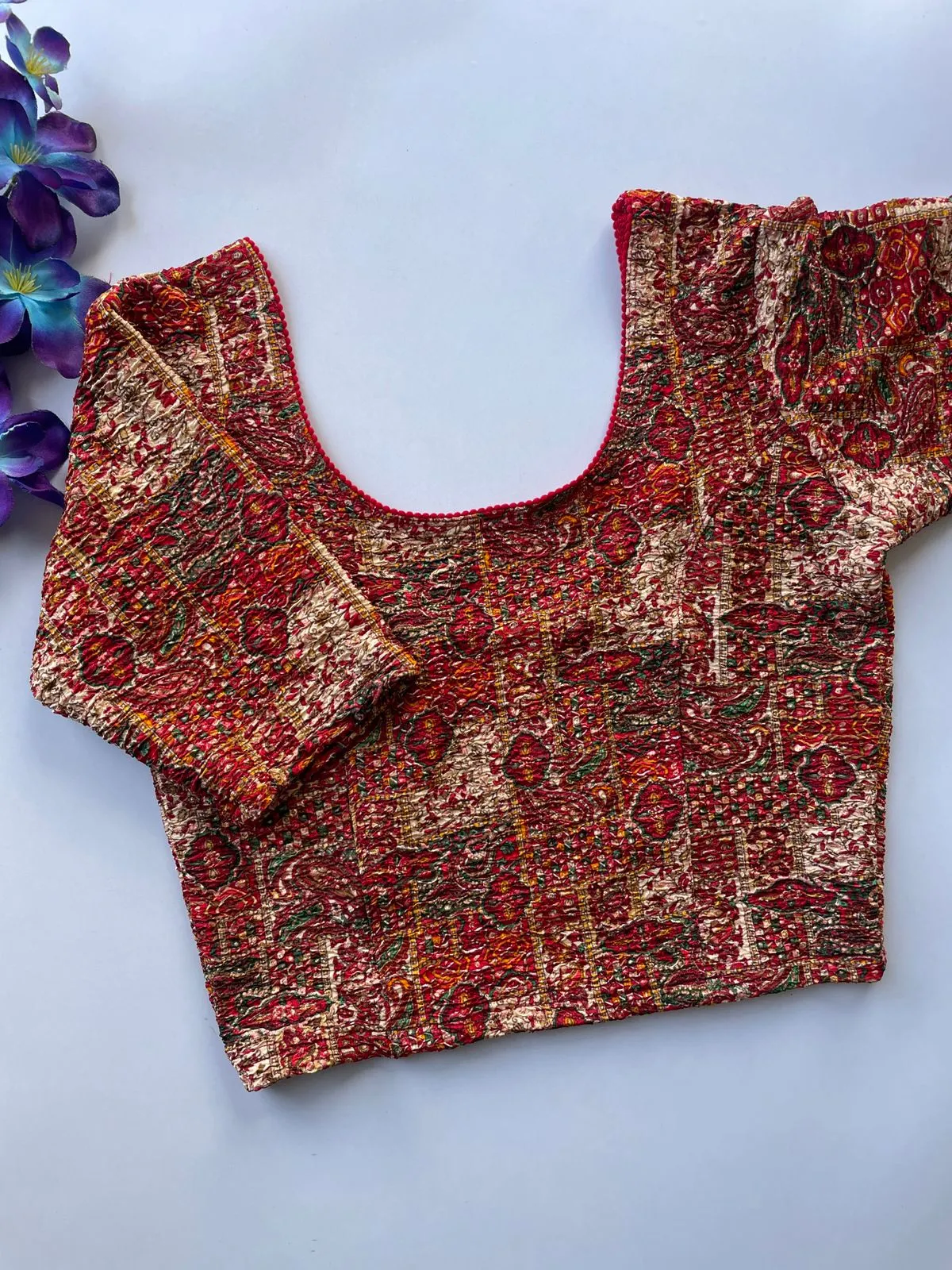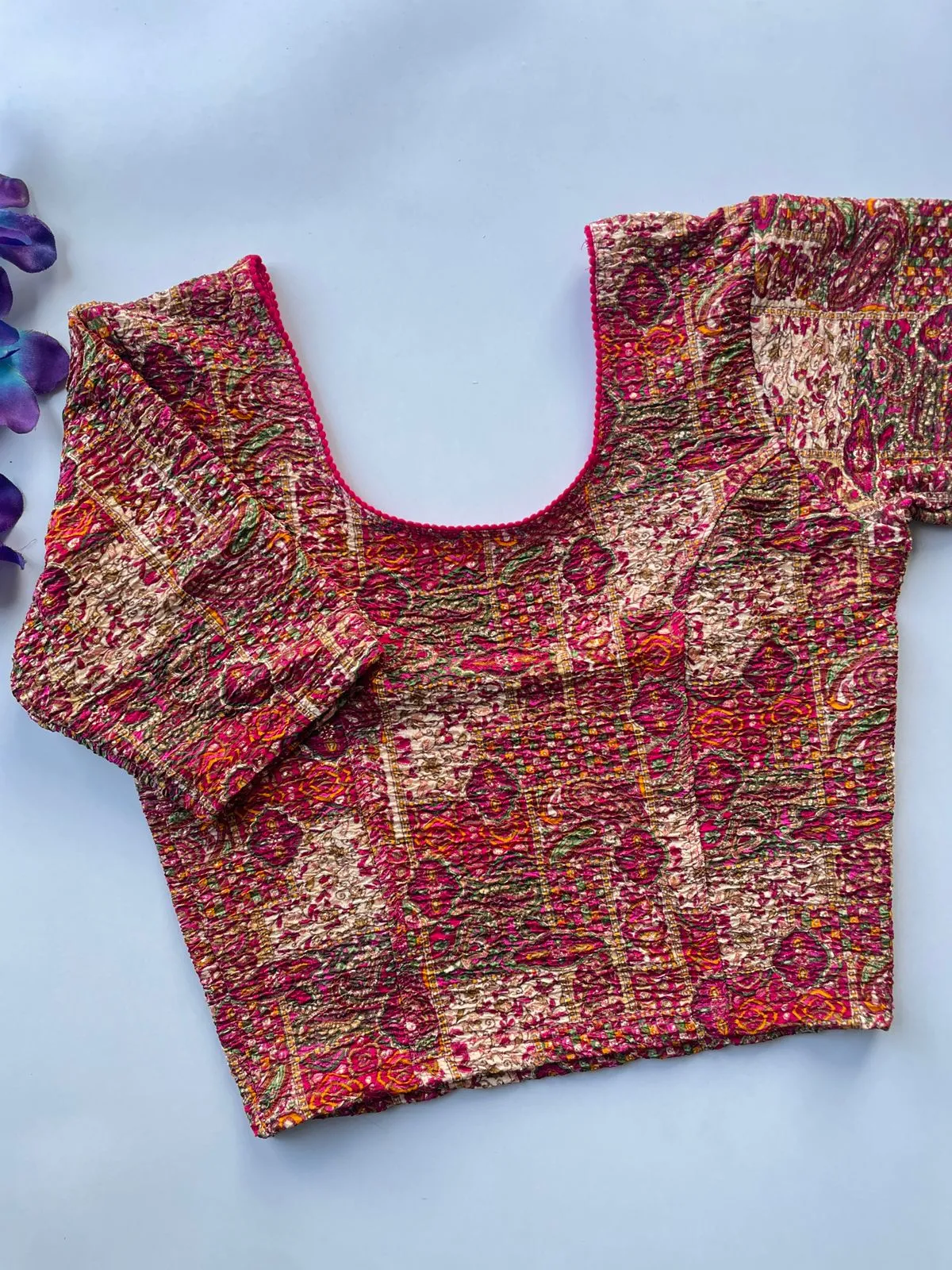 | Blouse | STRETCHABL COTTON KALAMKARI PRINT, Slive- 9inch SLIVE ,Back Pattern- ROUND SHAPE |