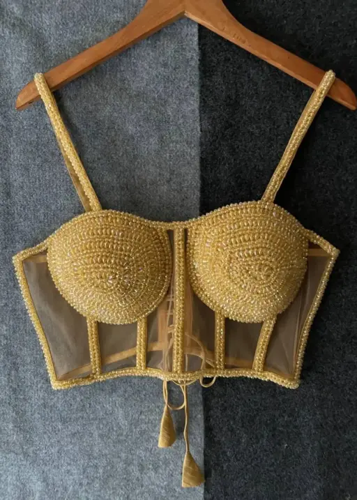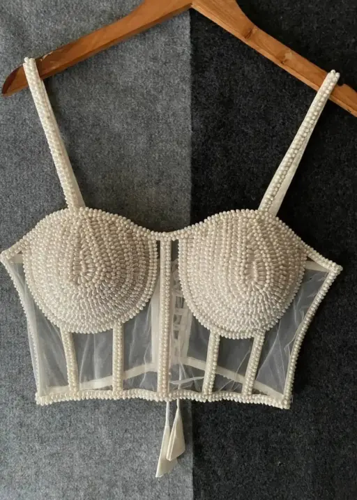 Ruhi Beautiful White Pearl Moti Spaghetti Blouse
