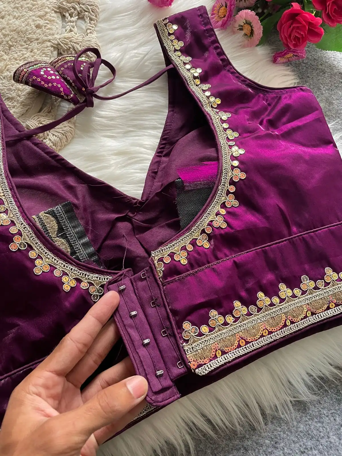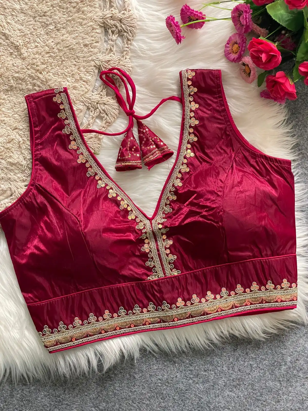 | Blouse | Heavy soft silky Zimichoo, COTTON THREAD WORK, Heavy Codding Embroidery + 2MM Sequence Work, DESGINE- Heavy Stitching Heavy Padded Handmade Hooks With Beautiful Latkans Back open Style, SIZE-Plus Size 38” Ready ulter upto 40Inch |