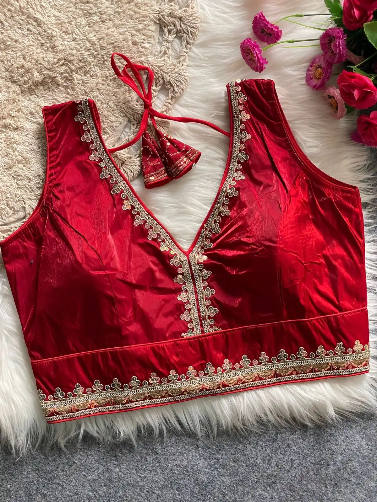 Ruhi Beautiful Red Pearl Moti Spaghetti Blouse