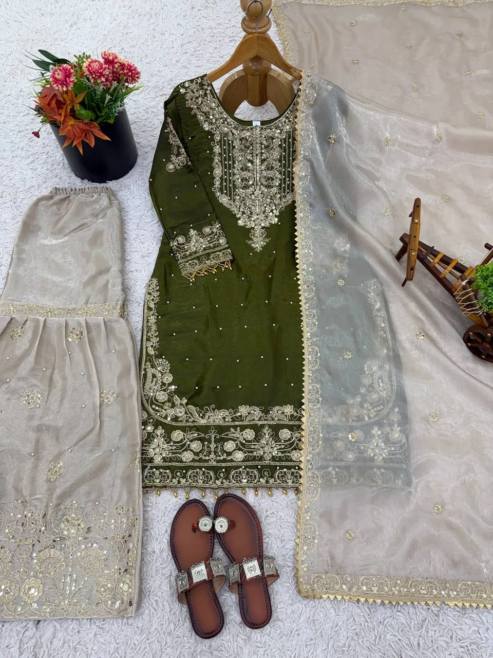 TopHeavy GMY SILK With Heavy Embroidery Coding Dori-Sequence Work With Rivet Moti Work Full Sleeve, Inner- Heavy Micro Cotton, Length- 41-42 Inch