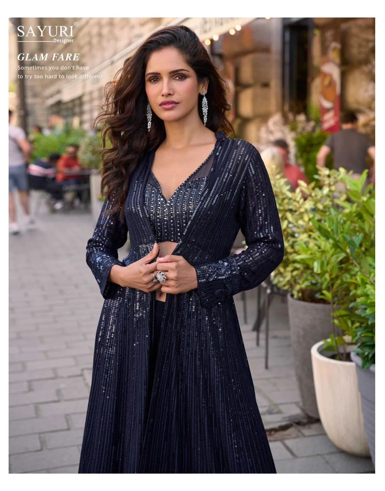 | Details | Real Premium Gerogette ( Full Heavy Look Front And Back Embroidered Floor Length Jacket With Embroidered Blouse And Plazzo ) |