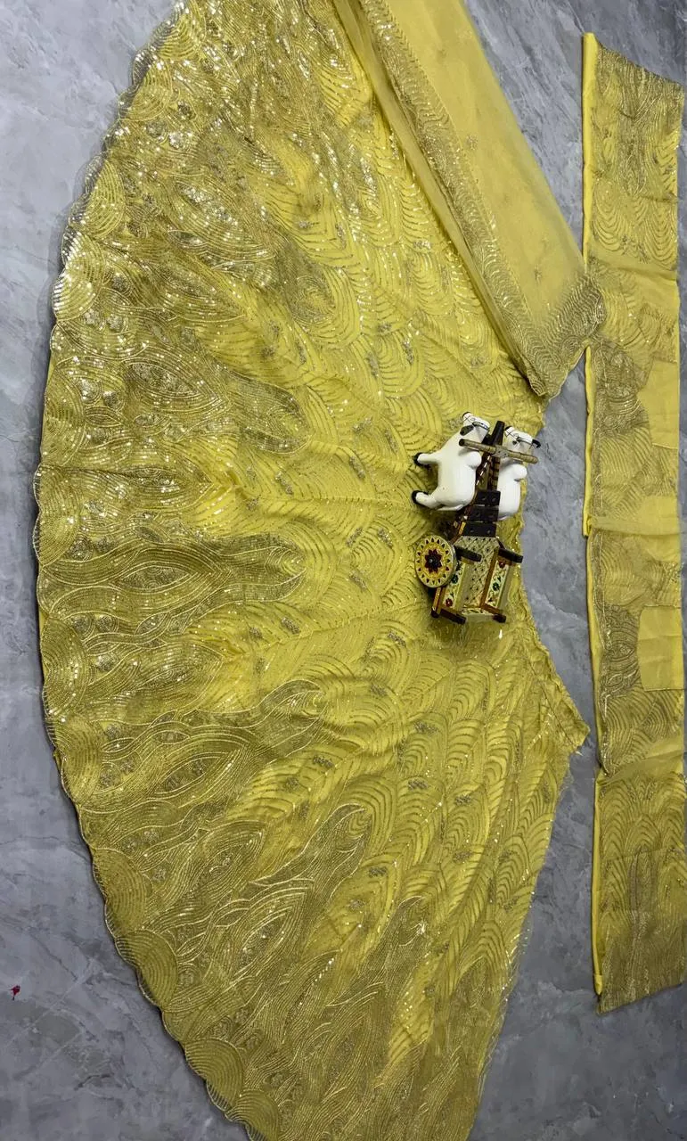 | Dupatta Fabric | Premium Quality Soft Net | Work- Embroidery Sequins work | 2.3 Meter | Total Weight- 1.5 kg Apx. |